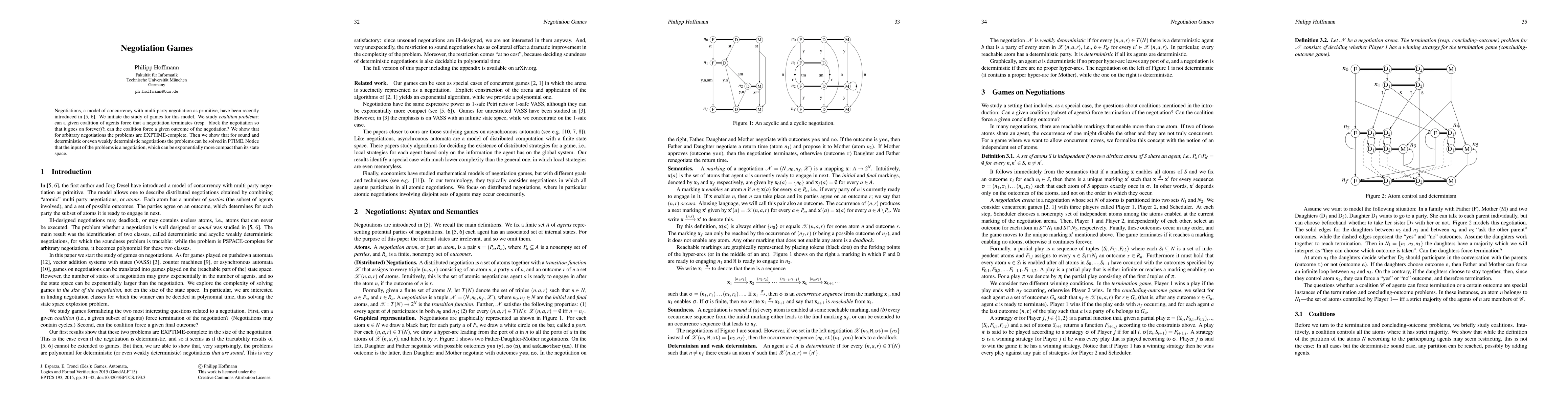 Negotiations, a model of concurrency with multi party negotiation as primitive, have been recently introduced by J. Desel and J. Esparza. We initiate the study of games for this model. We study coalition problems: can a given coalition of agents force that a negotiation terminates (resp. block the negotiation so that it goes on forever)?; can the coalition force a given outcome of the negotiation? We show that for arbitrary negotiations the problems are EXPTIME-complete. Then we show that for sound and deterministic or even weakly deterministic negotiations the problems can be solved in PTIME. Notice that the input of the problems is a negotiation, which can be exponentially more compact than its state space.