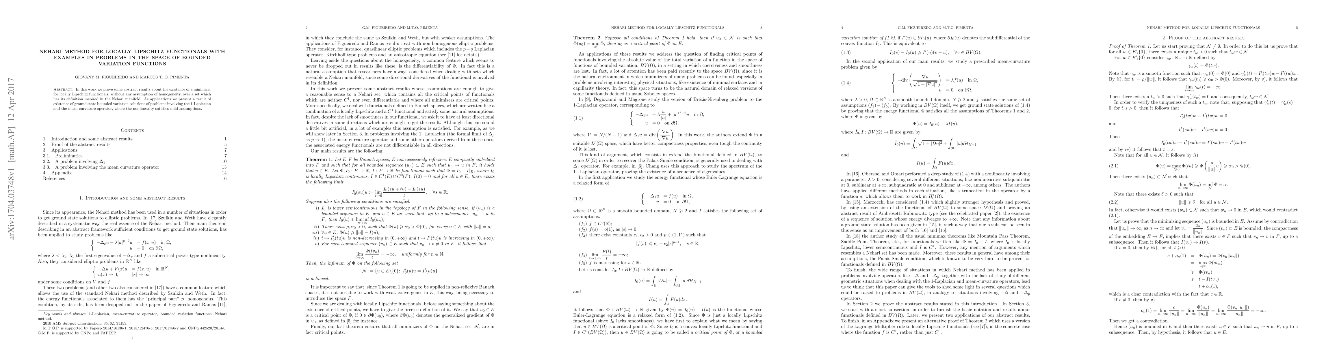 This paper proves the existence of minimizers for locally Lipschitz functionals using the Nehari method, without requiring homogeneity, and applies the results to find ground state solutions for problems involving the 1-Laplacian and mean-curvature operator in bounded variation function spaces.