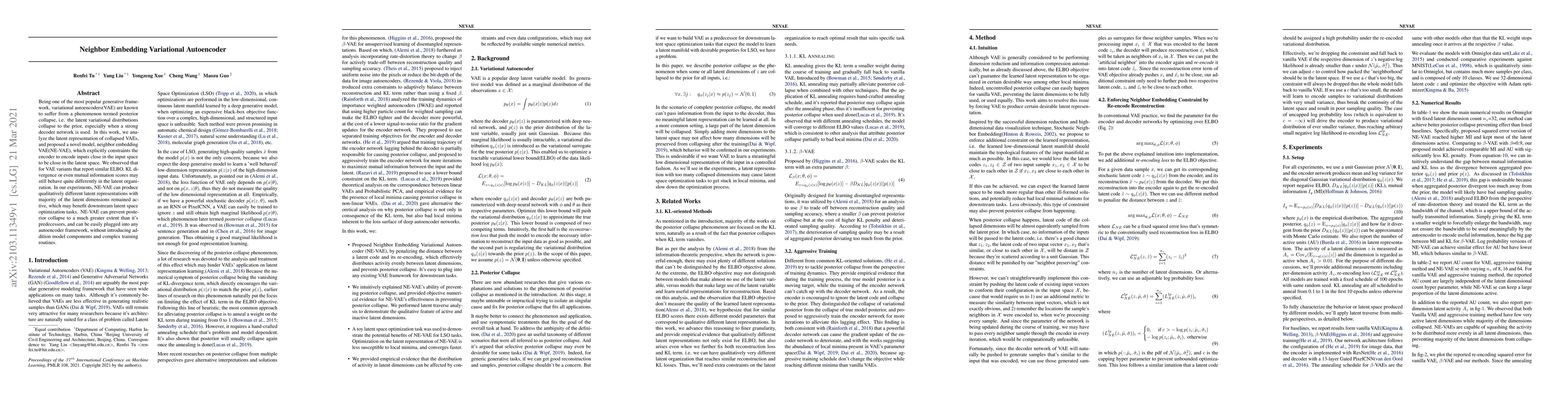 Researchers proposed a new Variational Autoencoder (VAE) model called Neighbor Embedding VAE (NE-VAE) to prevent posterior collapse and improve latent representation quality. NE-VAE can produce distinct latent representations with most dimensions active, benefiting downstream tasks.