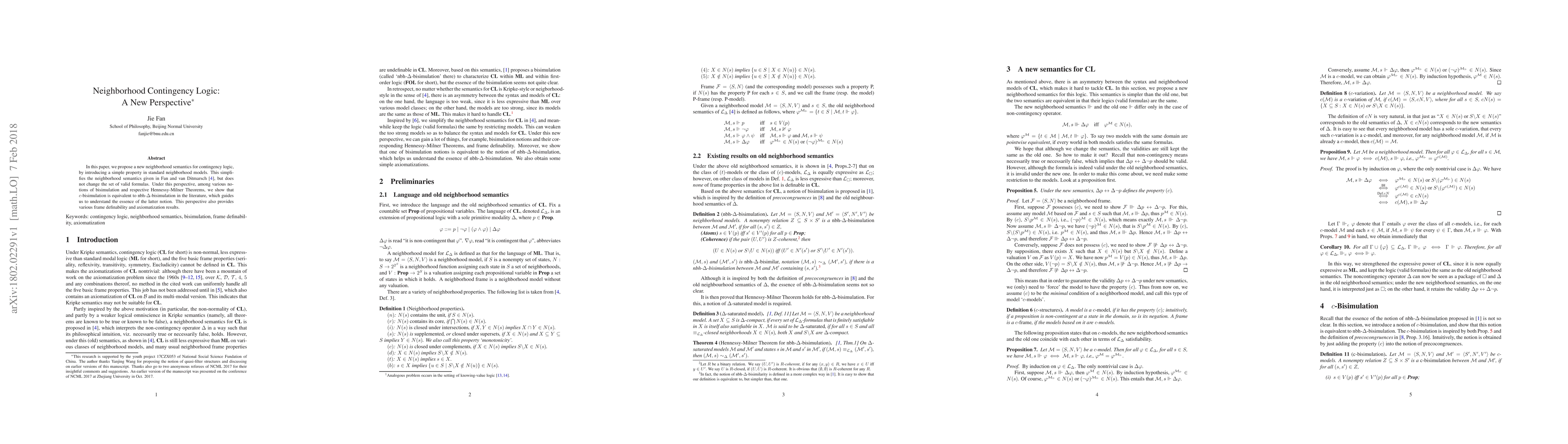 In this paper, we propose a new neighborhood semantics for contingency logic, by introducing a simple property in standard neighborhood models. This simplifies the neighborhood semantics given in (Fan and van Ditmarsch, 2015), but does not change the set of valid formulas. Under this perspective, among various notions of bisimulation and respective Hennessy-Milner Theorems, we show that $c$-bisimulation is equivalent to nbh-$\Delta$-bisimulation in the literature, which guides us to understand the essence of the latter notion. This perspective also provides various frame definability and axiomatization results.