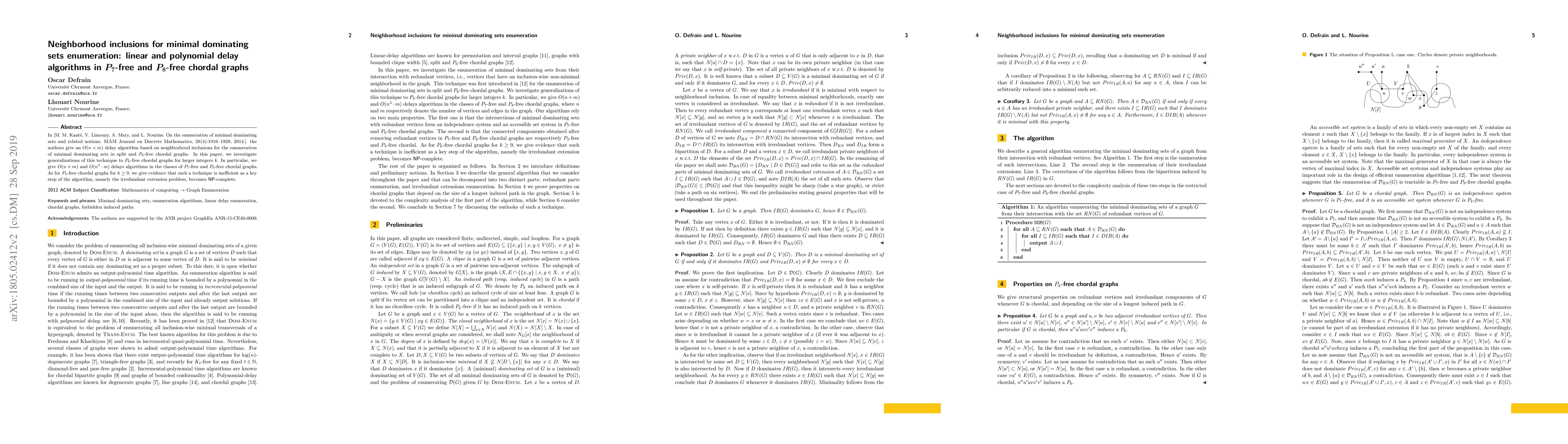 In [M. M. Kant\'e, V. Limouzy, A. Mary, and L. Nourine. On the enumeration of minimal dominating sets and related notions. SIAM Journal on Discrete Mathematics, 28(4):1916-1929, 2014] the authors give an $O(n+m)$ delay algorithm based on neighborhood inclusions for the enumeration of minimal dominating sets in split and $P_6$-free chordal graphs. In this paper, we investigate generalizations of this technique to $P_k$-free chordal graphs for larger integers $k$. In particular, we give $O(n+m)$ and $O(n^3\cdot m)$ delays algorithms in the classes of $P_7$-free and $P_8$-free chordal graphs. As for $P_k$-free chordal graphs for $k\geq 9$, we give evidence that such a technique is inefficient as a key step of the algorithm, namely the irredundant extension problem, becomes NP-complete.