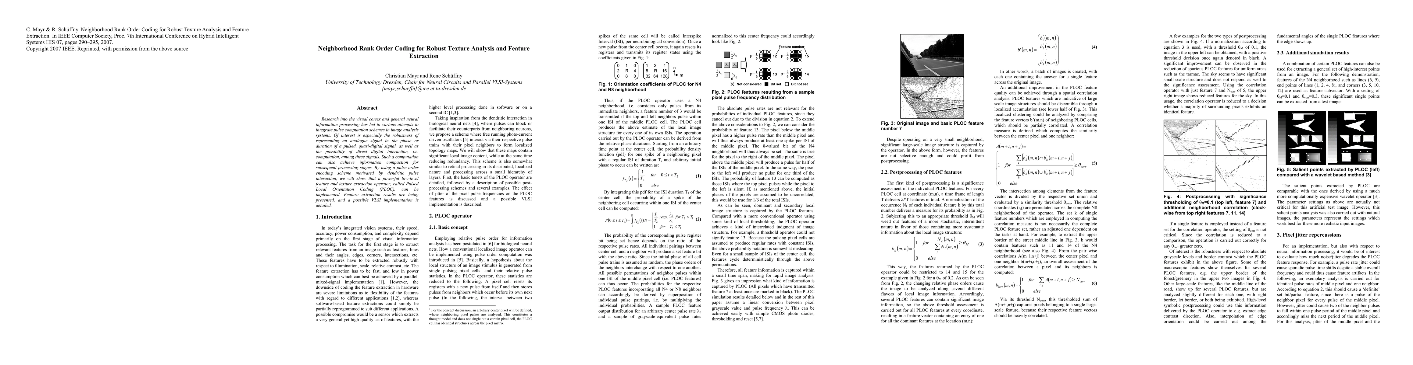 This paper proposes Pulsed Local Orientation Coding (PLOC) for robust texture analysis, inspired by dendritic pulse interactions in neural computation. It demonstrates the effectiveness of this method for low-level feature extraction and outlines a potential VLSI implementation for efficient processing.