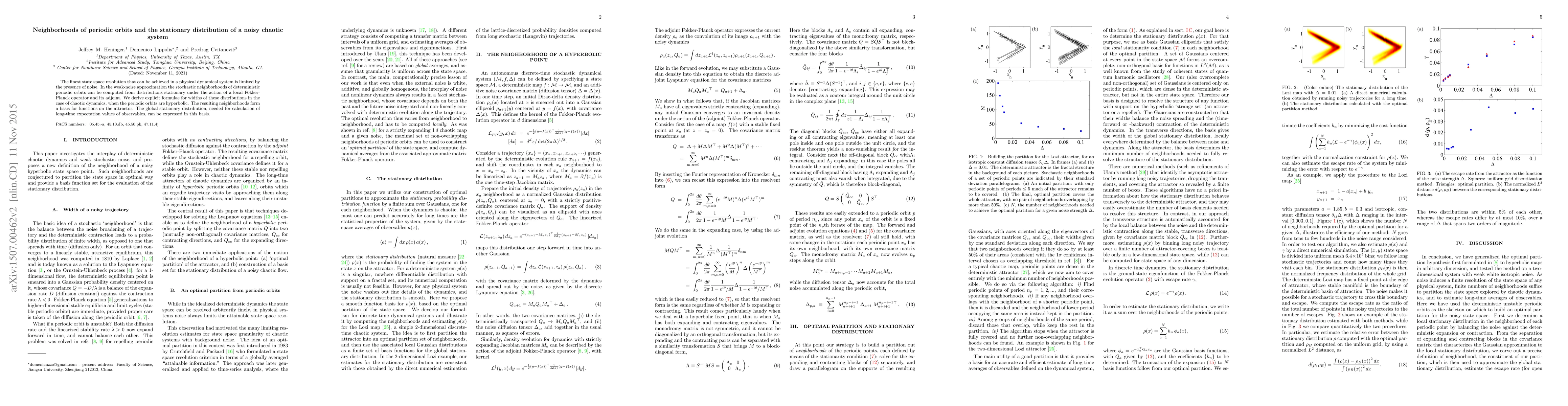 The finest state space resolution that can be achieved in a physical dynamical system is limited by the presence of noise. In the weak-noise approximation the neighborhoods of deterministic periodic orbits can be computed as distributions stationary under the action of a local Fokker-Planck operator and its adjoint. We derive explicit formulae for widths of these distributions in the case of chaotic dynamics, when the periodic orbits are hyperbolic. The resulting neighborhoods form a basis for functions on the attractor. The global stationary distribution, needed for calculation of long-time expectation values of observables, can be expressed in this basis.