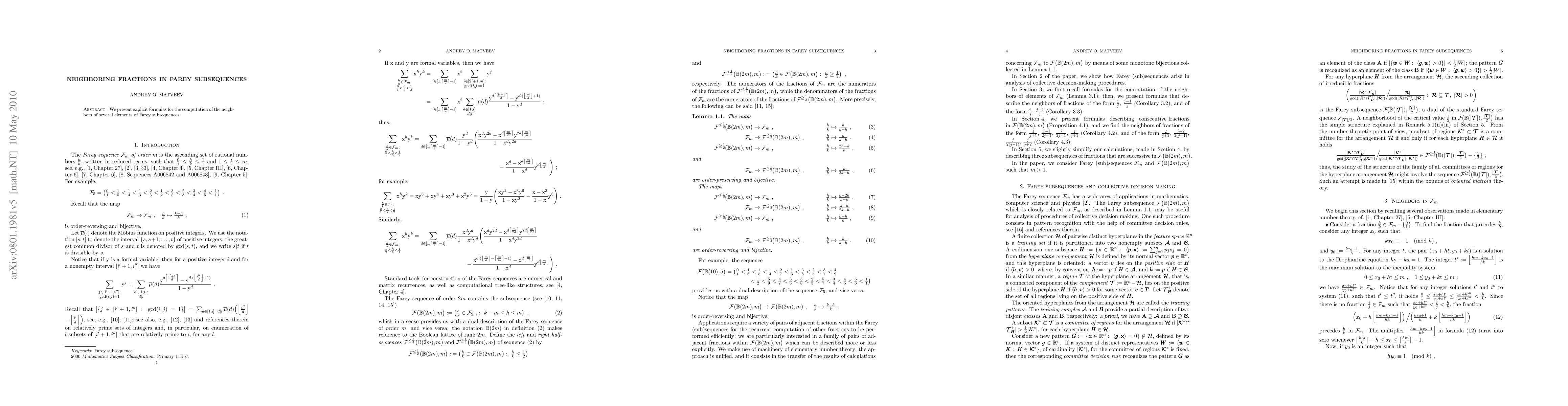 Summary: This paper provides explicit formulas for determining the neighboring fractions in various Farey subsequences. The results enhance the understanding of the structure and relationships within these important sequences of rational numbers.