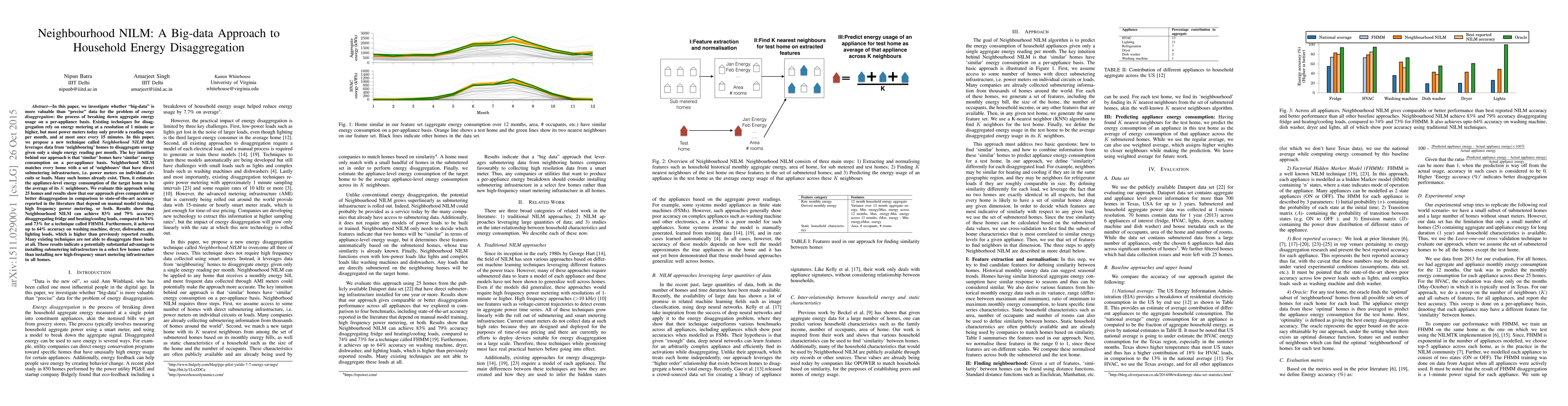 This paper proposes a Neighbourhood NILM technique to disaggregate household energy usage using big-data from neighboring homes, achieving comparable or better accuracy than existing methods that rely on high-frequency power metering or manual model training. The approach leverages the similarity in energy consumption patterns among similar homes, showing promising results in disaggregating various appliance loads.