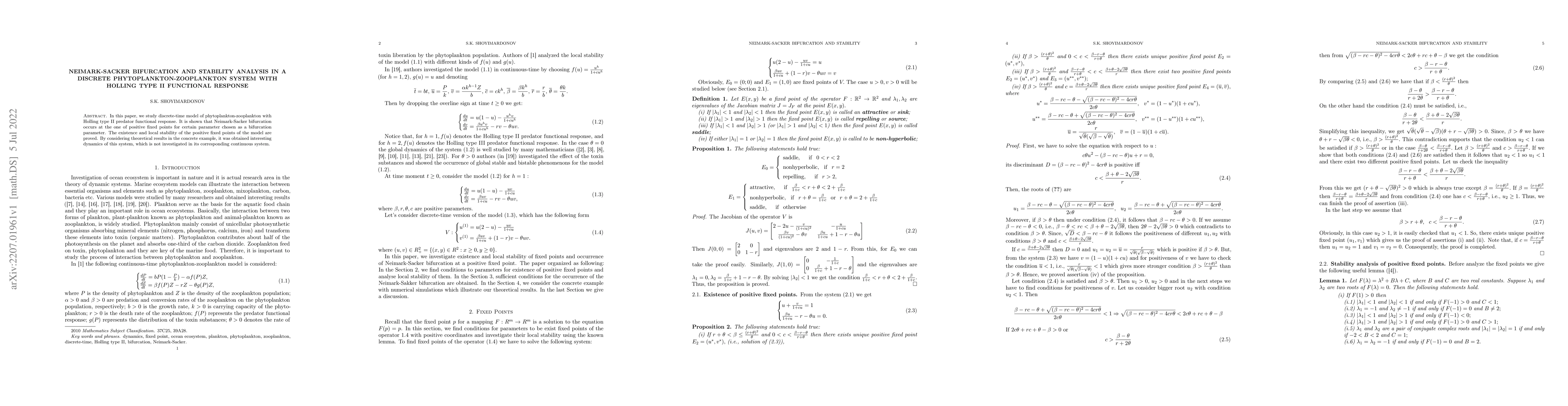 This paper investigates a discrete-time phytoplankton-zooplankton model with Holling type II functional response, demonstrating Neimark-Sacker bifurcation at a positive fixed point. It proves the existence and local stability of these points, revealing unique dynamics not observed in the continuous system counterpart.