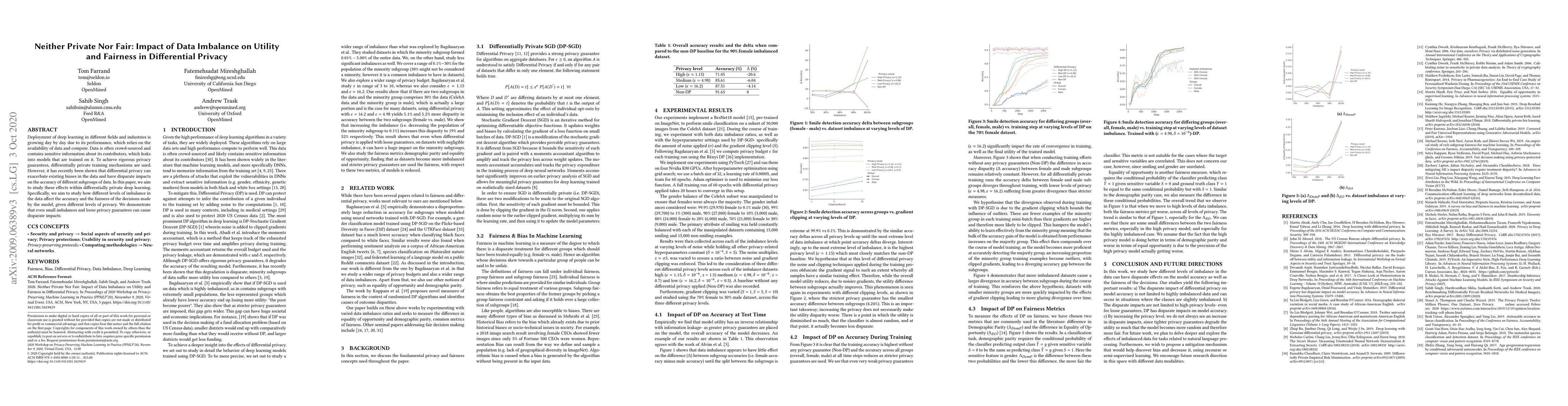 This research explores the impact of data imbalance on the accuracy and fairness of differentially private deep learning models. It reveals that even minor data imbalances and lenient privacy guarantees can lead to significant disparities in model performance across different subgroups, thereby challenging the effectiveness of differential privacy in ensuring fairness.