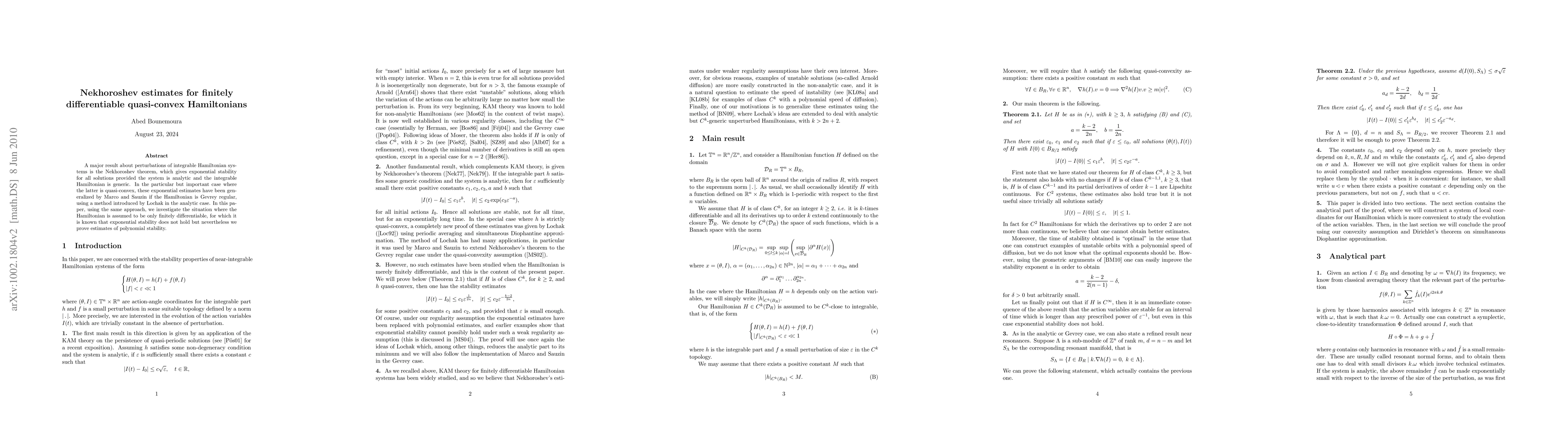 This paper generalizes Nekhoroshev estimates for quasi-convex Hamiltonians that are only finitely differentiable, proving polynomial stability instead of exponential stability, extending the method used for Gevrey regular Hamiltonians.