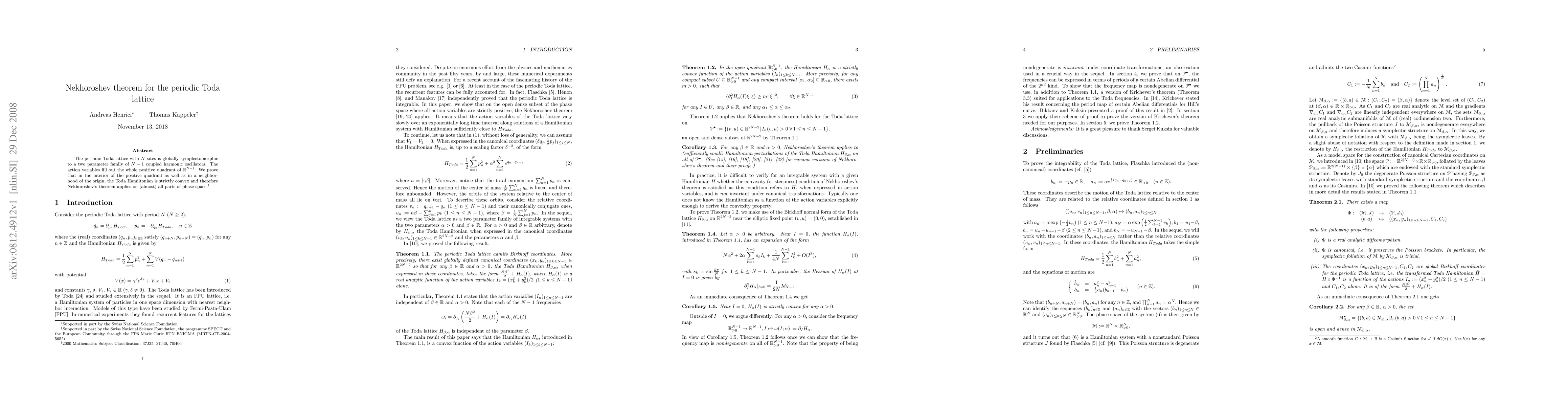 The periodic Toda lattice is shown to be globally symplectomorphic to coupled harmonic oscillators. The authors prove that the Toda Hamiltonian is strictly convex, allowing the application of Nekhoroshev's theorem in the interior of the positive quadrant and near the origin.