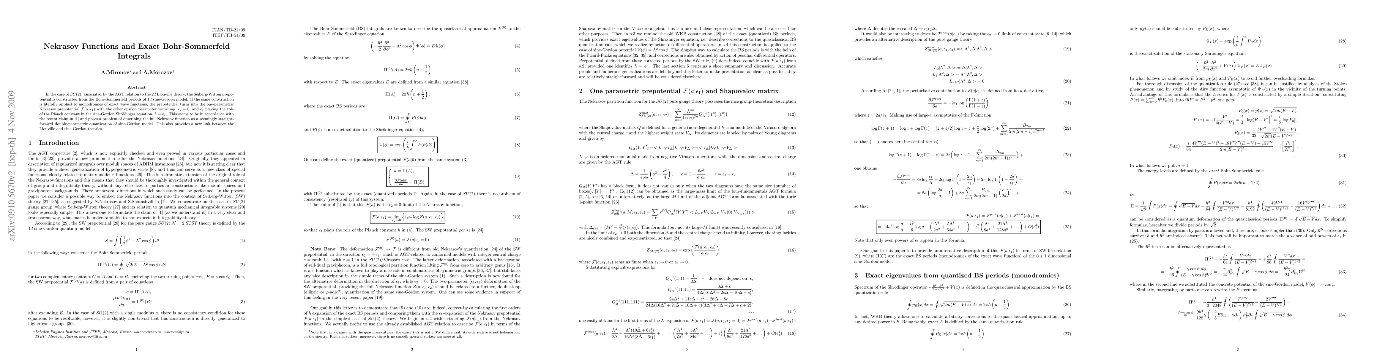 In the case of SU(2), associated by the AGT relation to the 2d Liouville theory, the Seiberg-Witten prepotential is constructed from the Bohr-Sommerfeld periods of 1d sine-Gordon model. If the same construction is literally applied to monodromies of exact wave functions, the prepotential turns into the one-parametric Nekrasov prepotential F(a,\epsilon_1) with the other epsilon parameter vanishing, \epsilon_2=0, and \epsilon_1 playing the role of the Planck constant in the sine-Gordon Shroedinger equation, \hbar=\epsilon_1. This seems to be in accordance with the recent claim in arXiv:0908.4052 and poses a problem of describing the full Nekrasov function as a seemingly straightforward double-parametric quantization of sine-Gordon model. This also provides a new link between the Liouville and sine-Gordon theories.