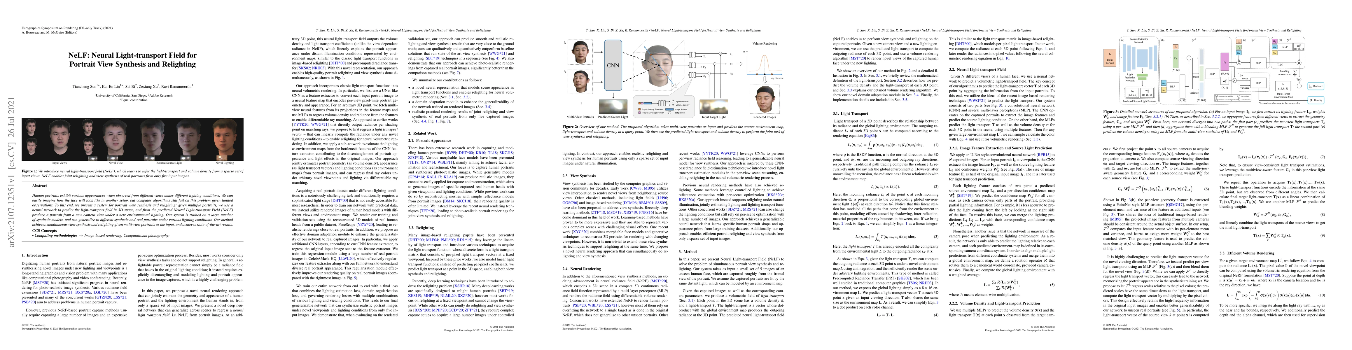 This paper introduces NeLF, a neural network system for synthesizing new views and relighting human portraits from multiple input images. It predicts a 3D light-transport field and generalizes to both synthetic and real portraits under various lighting conditions, achieving state-of-the-art results.
