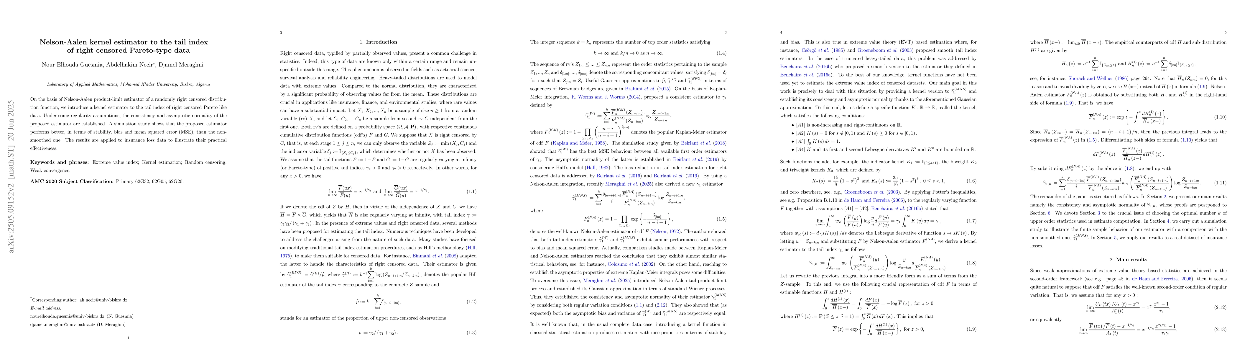 The research introduces a kernel estimator to the tail index of right-censored Pareto-like data based on the Nelson-Aalen product-limit estimator, establishing its consistency and asymptotic normality under regularity assumptions.