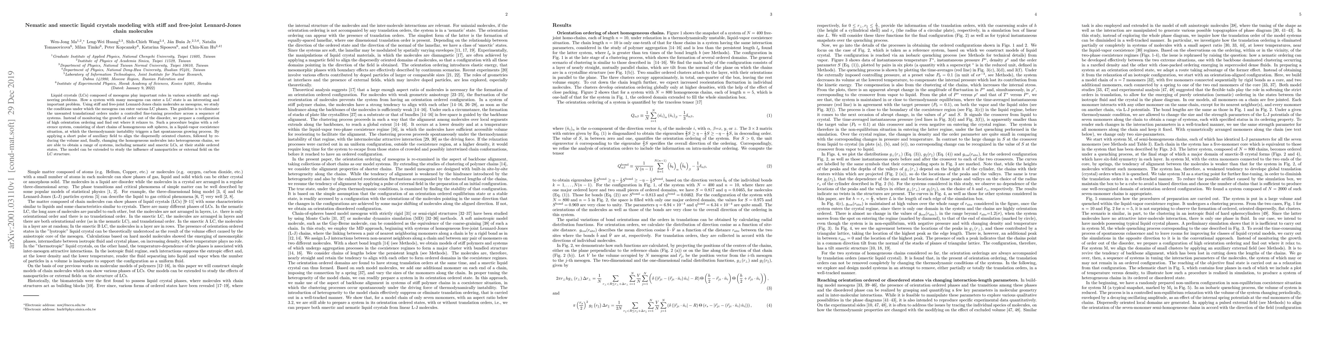 Liquid crystals (LCs) composed of mesogens play important roles in various scientific and engineering problems. How a system with many mesogens can enter a LC state is an interesting and important problem. Using stiff and free-joint Lennard-Jones chain molecules as mesogens, we study the conditions under which the mesogens can enter various LC phases. The guideline is to eliminate the unwanted translational orders under a controlled fine-tuning procedure across a sequence of systems. Instead of monitoring the growth of order out of the disorder, we prepare a configuration of high orientation ordering and find out where it relaxes to. Such a procedure begins with a reference system, consisting of short chains of homogeneous soft spheres, in a liquid-vapor coexistence situation, at which the thermodynamic instability triggers a fast spontaneous growing process. By applying a short pulse of auxiliary field to align the dispersedly oriented clusters, followed by reducing the volume and, finally, changing the homogeneous molecules into heterogeneous chains, we are able to obtain a range of systems, including nematic and smectic LCs, at their stable ordered states. The model can be extended to study the influence of nanoparticles or external field on the LC structure.