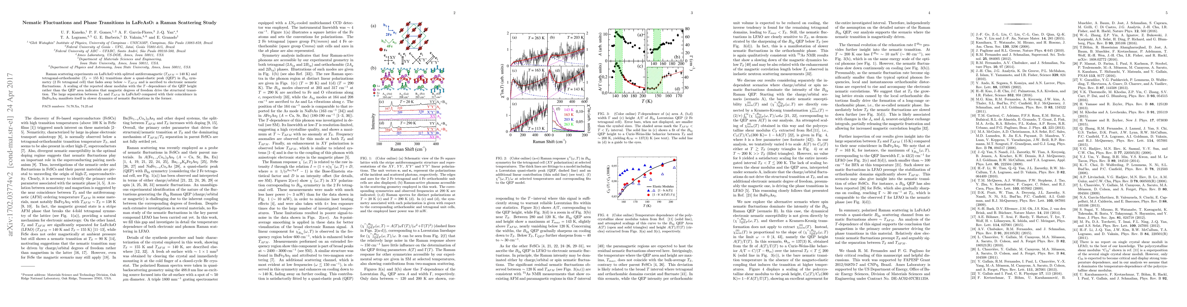 Raman scattering experiments on LaFeAsO with splitted antiferromagnetic (T_AFM = 140 K) and tetragonal-orthorhombic (T_S = 155 K) transitions show a quasi-elastic peak (QEP) in B2g symmetry (2 Fe tetragonal cell) that fades away below ~T_AFM and is ascribed to electronic nematic fluctuations. A scaling of the reported shear modulus with the T-dependence of the QEP height rather than the QEP area indicates that magnetic degrees of freedom drive the structural transition. The large separation between T_S and T_AFM in LaFeAsO compared with their coincidence in BaFe2As2 manifests itself in slower dynamics of nematic fluctuations in the former.