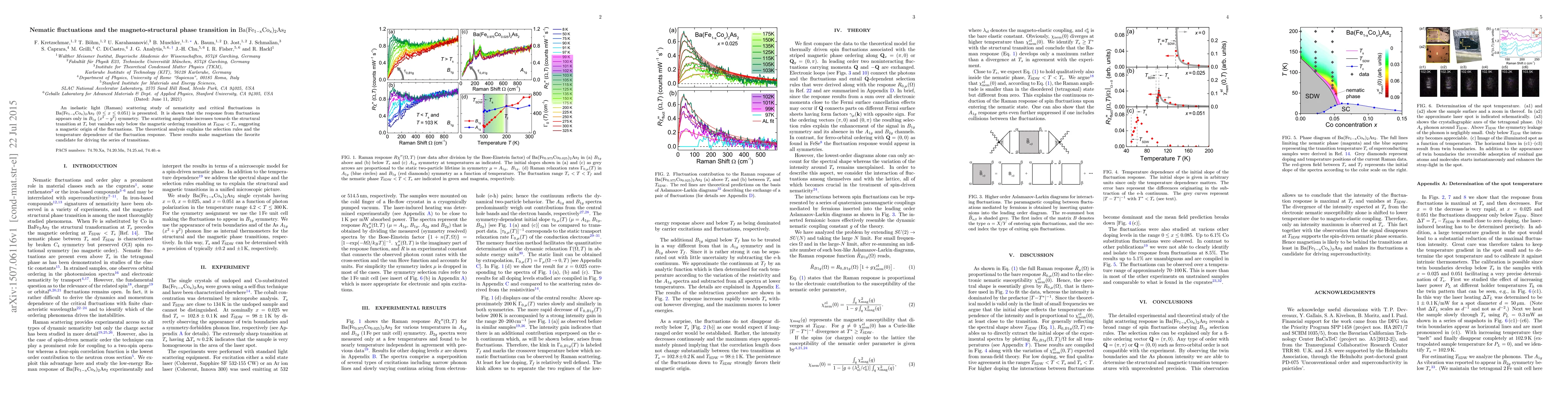Researchers studied the material Ba(Fe_{1-x}Co_x)_2As_2 using Raman scattering to understand nematicity and critical fluctuations. They found that magnetic ordering drove the fluctuations, with a gap opening up below the magnetic transition temperature.