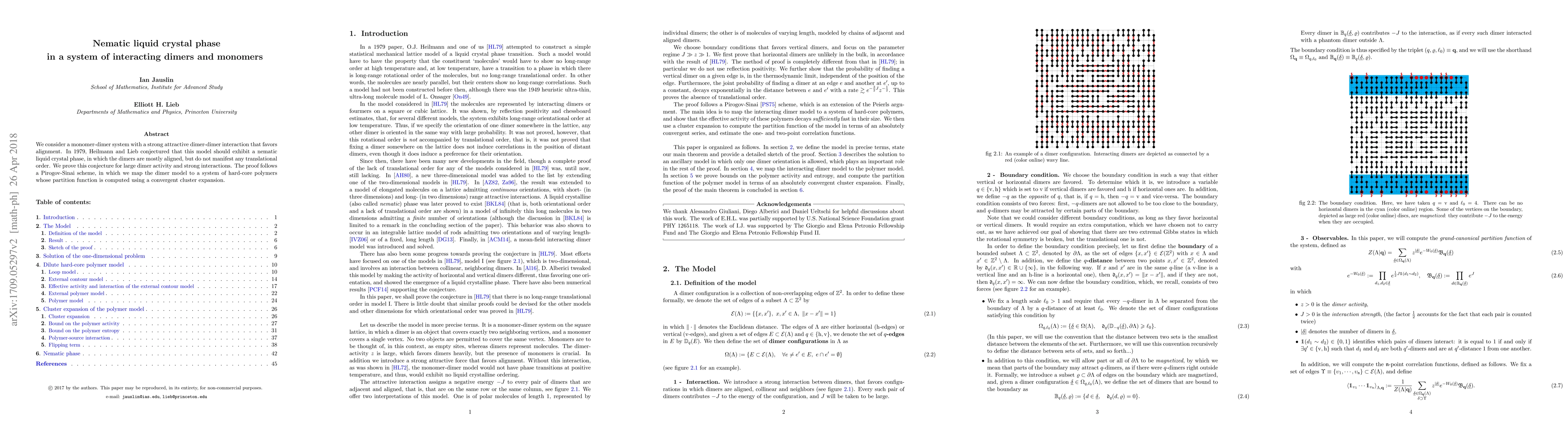 This paper proves the Heilmann-Lieb conjecture that a monomer-dimer system with strong dimer-dimer interactions exhibits a nematic liquid crystal phase, characterized by aligned dimers without translational order. The proof employs a Pirogov-Sinai scheme and a convergent cluster expansion to analyze the system.