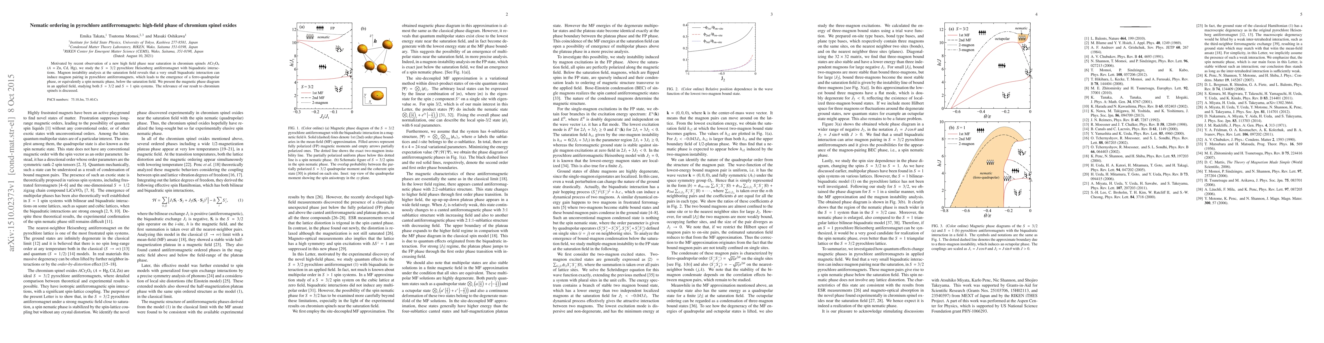 Researchers study how a small interaction can induce a ferromagnetic phase in certain materials, leading to a new spin nematic state below the saturation point.