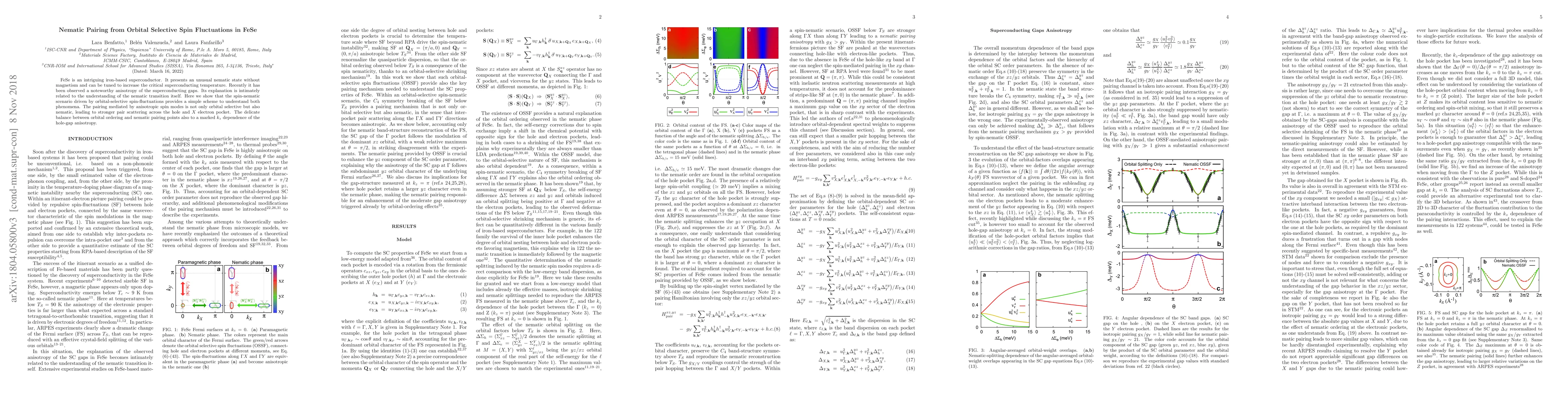 This paper investigates the iron-based superconductor FeSe, revealing that nematic pairing arises from orbital-selective spin fluctuations, explaining both the nematic state and the anisotropy in superconducting gaps. The study suggests that pairing mediated by anisotropic spin modes is both orbital selective and nematic, influencing the critical superconducting temperature.