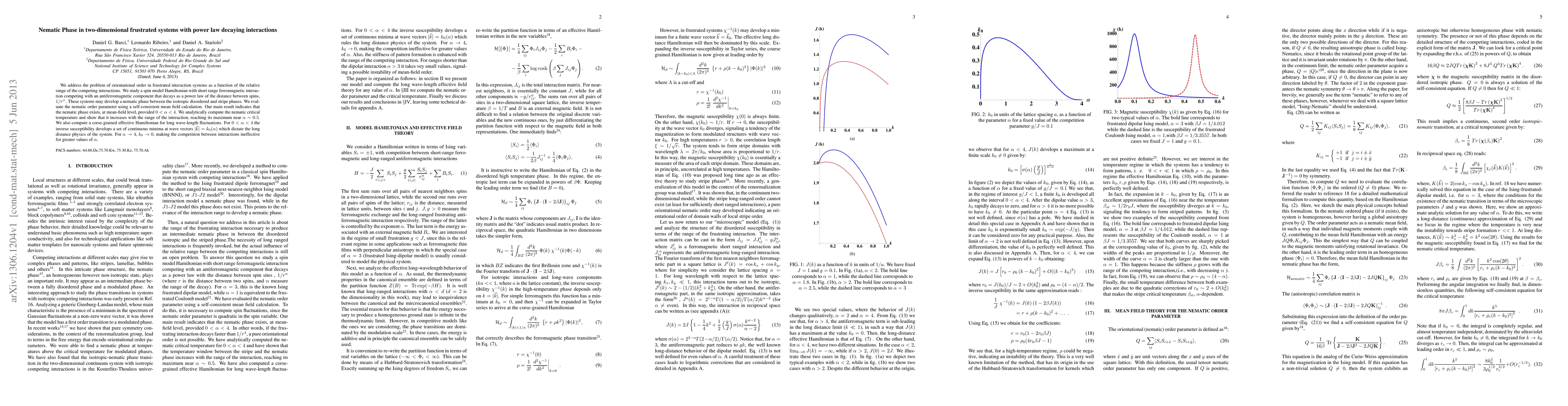 Researchers found that in 2D frustrated systems with power-law decaying interactions, a nematic phase exists when the interaction range is between 0 and 4, and its critical temperature increases with interaction range.