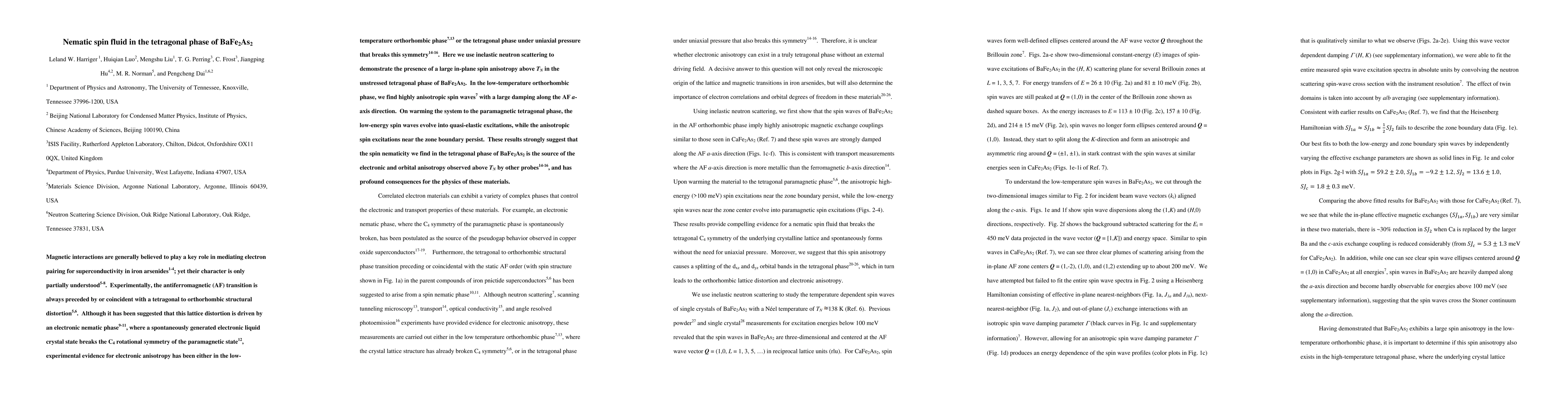 This study uses inelastic neutron scattering to reveal a large in-plane spin anisotropy in the tetragonal phase of BaFe2As2, above its antiferromagnetic transition temperature TN. The research finds anisotropic spin waves in the orthorhombic phase and quasi-elastic excitations in the paramagnetic tetragonal phase, suggesting that tetragonal-phase spin nematicity is the origin of observed electronic and orbital anisotropy in iron arsenides.