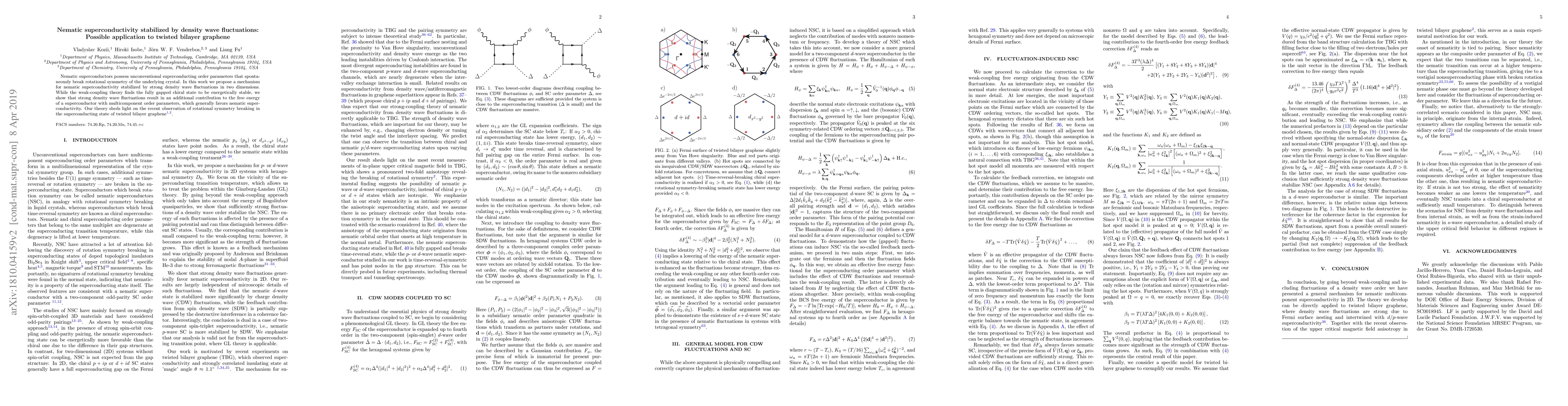 This paper proposes a mechanism for nematic superconductivity stabilized by density wave fluctuations in two-dimensional systems, suggesting it could explain the observed rotational symmetry breaking in twisted bilayer graphene superconductors. The theory indicates that strong fluctuations favor nematic superconductivity over a fully gapped chiral state.