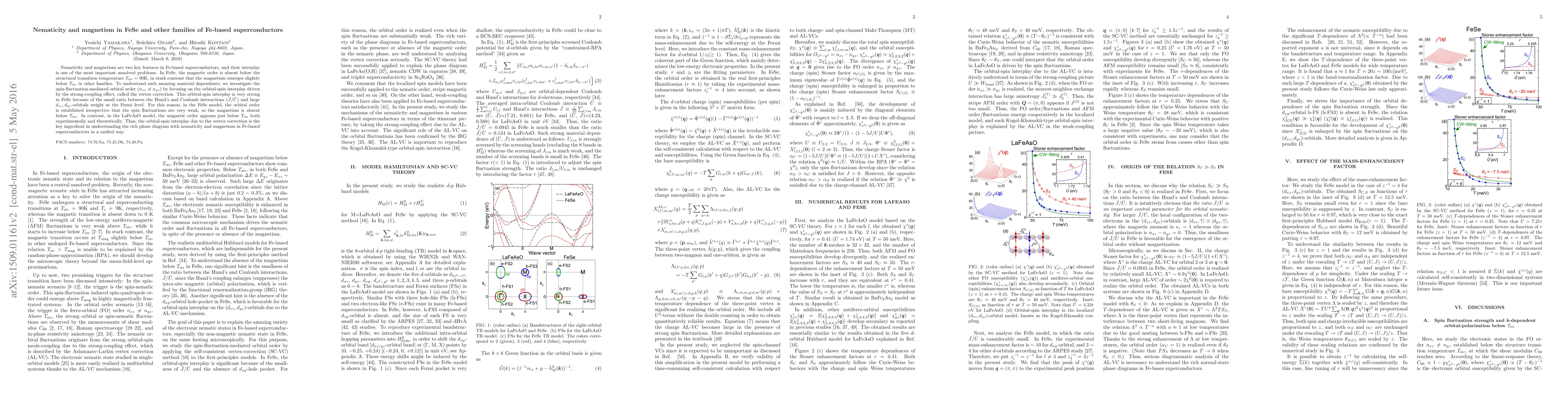 This paper investigates the interplay between nematicity and magnetism in FeSe and other Fe-based superconductors, revealing that the absence of magnetism below the structural transition in FeSe is due to a strong orbital-spin interplay driven by the vertex correction, contrasting with the magnetic order seen in LaFeAsO. The study highlights the importance of this interplay in understanding the complex phase diagrams of these materials.