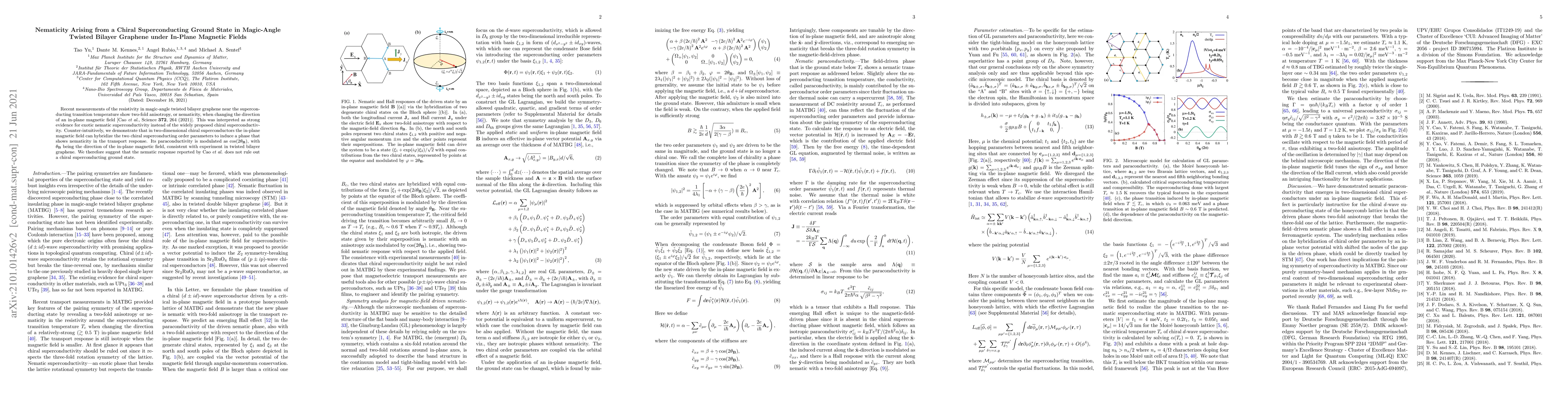 This paper demonstrates that nematicity in magic-angle twisted bilayer graphene under in-plane magnetic fields arises from the hybridization of chiral superconducting order parameters, thus maintaining the possibility of a chiral superconducting ground state rather than indicating exotic nematic superconductivity. The observed resistivity anisotropy matches the theoretical prediction of $\cos(2\theta_{\bf B})$.