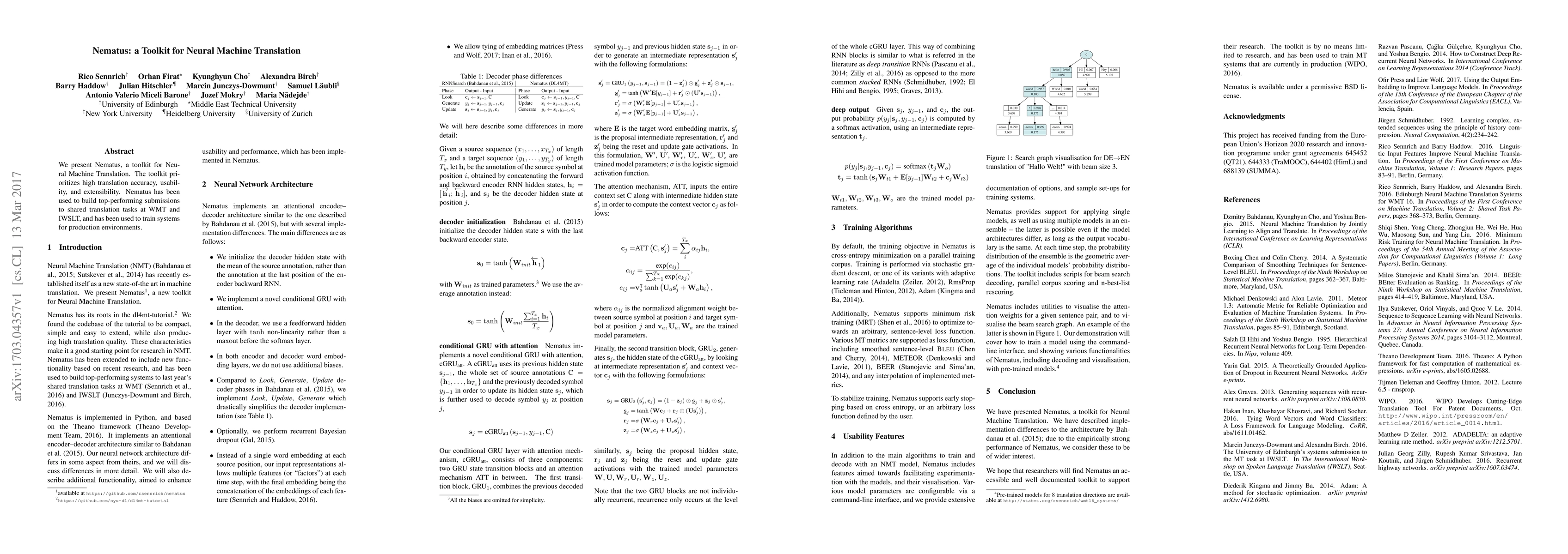 Nematus is a versatile toolkit for Neural Machine Translation focusing on high accuracy, ease of use, and adaptability. It has successfully contributed to top-ranking models in WMT and IWSLT competitions and supports production-level translation systems.