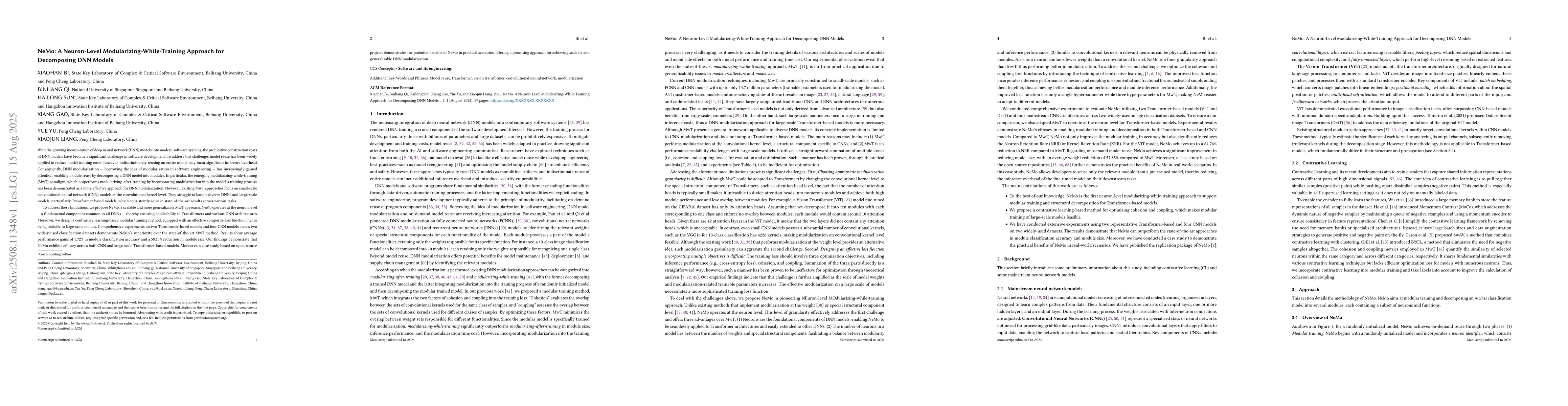 With the growing incorporation of deep neural network (DNN) models into modern software systems, the prohibitive construction costs have become a significant challenge. Model reuse has been widely applied to reduce training costs, but indiscriminately reusing entire models may incur significant inference overhead. Consequently, DNN modularization has gained attention, enabling module reuse by decomposing DNN models. The emerging modularizing-while-training (MwT) paradigm, which incorporates modularization into training, outperforms modularizing-after-training approaches. However, existing MwT methods focus on small-scale CNN models at the convolutional kernel level and struggle with diverse DNNs and large-scale models, particularly Transformer-based models. To address these limitations, we propose NeMo, a scalable and generalizable MwT approach. NeMo operates at the neuron level fundamental component common to all DNNs-ensuring applicability to Transformers and various architectures. We design a contrastive learning-based modular training method with an effective composite loss function, enabling scalability to large-scale models. Comprehensive experiments on two Transformer-based models and four CNN models across two classification datasets demonstrate NeMo's superiority over state-of-the-art MwT methods. Results show average gains of 1.72% in module classification accuracy and 58.10% reduction in module size, demonstrating efficacy across both CNN and large-scale Transformer-based models. A case study on open-source projects shows NeMo's potential benefits in practical scenarios, offering a promising approach for scalable and generalizable DNN modularization.