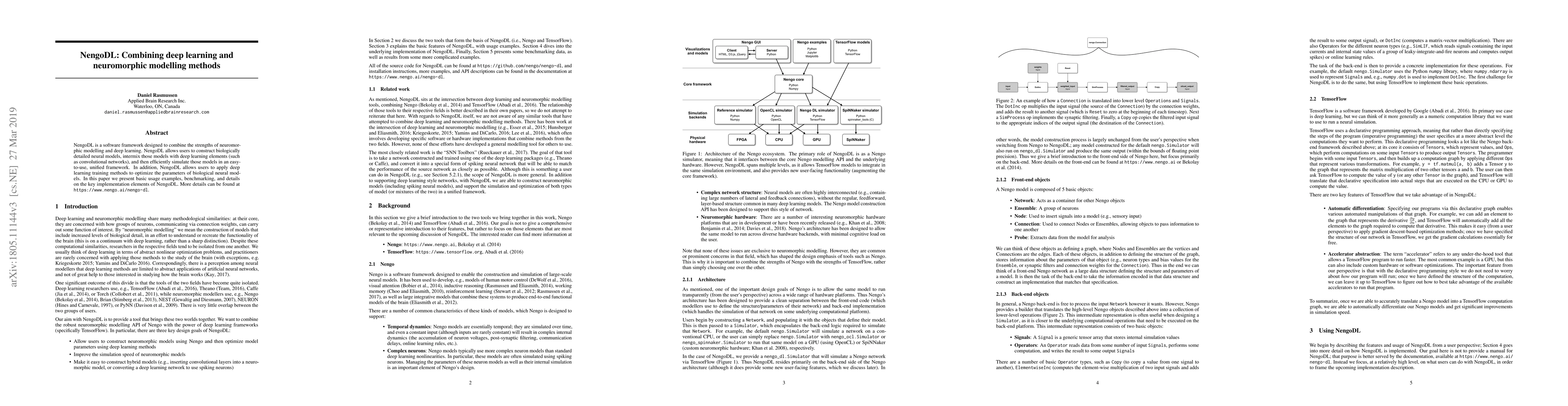 NengoDL is a software framework designed to combine the strengths of neuromorphic modelling and deep learning. NengoDL allows users to construct biologically detailed neural models, intermix those models with deep learning elements (such as convolutional networks), and then efficiently simulate those models in an easy-to-use, unified framework. In addition, NengoDL allows users to apply deep learning training methods to optimize the parameters of biological neural models. In this paper we present basic usage examples, benchmarking, and details on the key implementation elements of NengoDL. More details can be found at https://www.nengo.ai/nengo-dl .