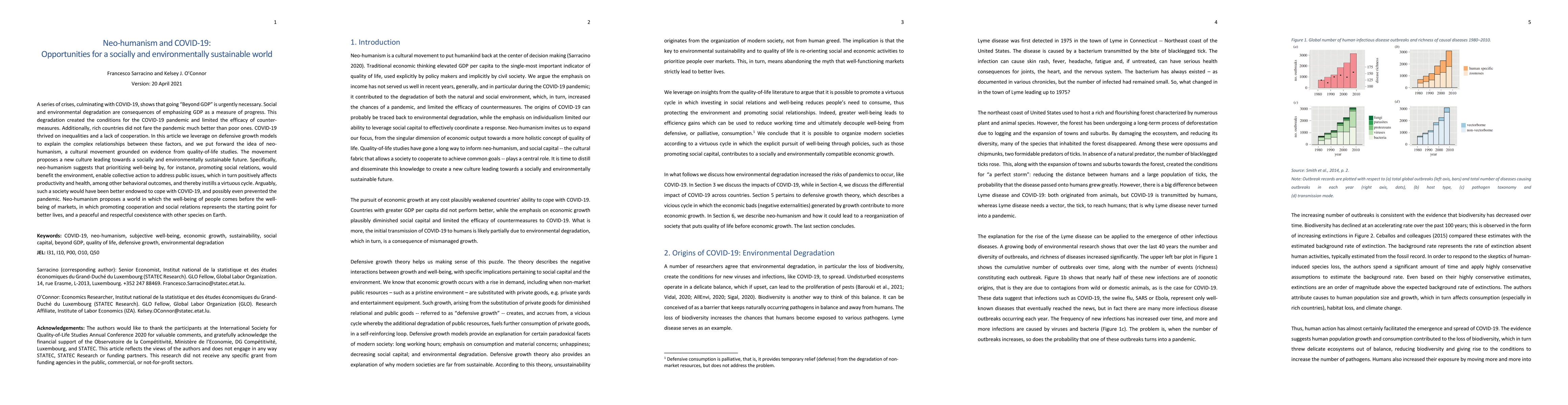 A series of crises, culminating with COVID-19, shows that going Beyond GDP is urgently necessary. Social and environmental degradation are consequences of emphasizing GDP as a measure of progress. This degradation created the conditions for the COVID-19 pandemic and limited the efficacy of counter-measures. Additionally, rich countries did not fare the pandemic much better than poor ones. COVID-19 thrived on inequalities and a lack of cooperation. In this article we leverage on defensive growth models to explain the complex relationships between these factors, and we put forward the idea of neo-humanism, a cultural movement grounded on evidence from quality-of-life studies. The movement proposes a new culture leading towards a socially and environmentally sustainable future. Specifically, neo-humanism suggests that prioritizing well-being by, for instance, promoting social relations, would benefit the environment, enable collective action to address public issues, which in turn positively affects productivity and health, among other behavioral outcomes, and thereby instills a virtuous cycle. Arguably, such a society would have been better endowed to cope with COVID-19, and possibly even prevented the pandemic. Neo-humanism proposes a world in which the well-being of people comes before the well-being of markets, in which promoting cooperation and social relations represents the starting point for better lives, and a peaceful and respectful coexistence with other species on Earth.