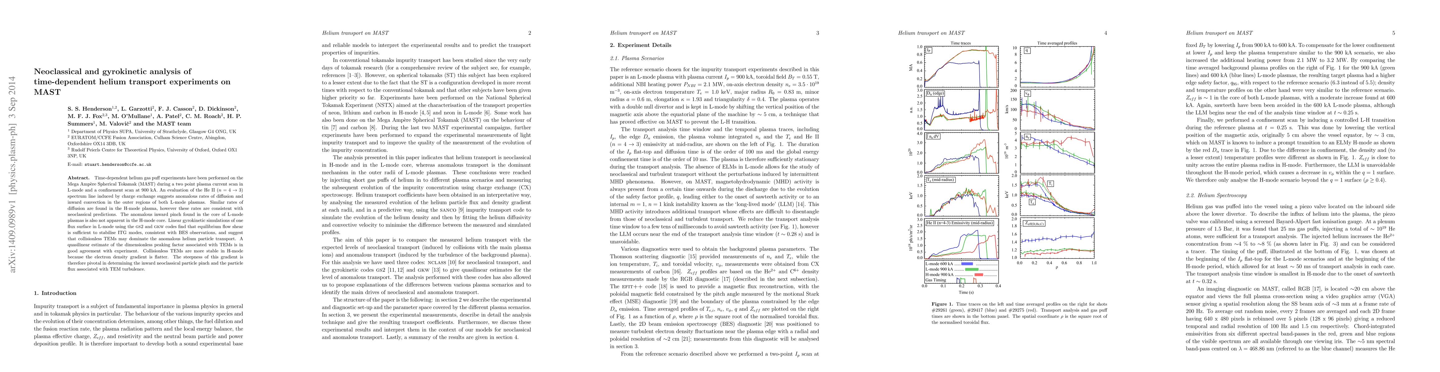 This paper investigates helium transport in MAST tokamak experiments, finding anomalous diffusion and convection in L-mode plasmas, while H-mode shows neoclassical rates. Gyrokinetic simulations suggest that collisionless TEMs dominate the anomalous transport in L-mode, with the electron density gradient's steepness influencing the inward neoclassical pinch.