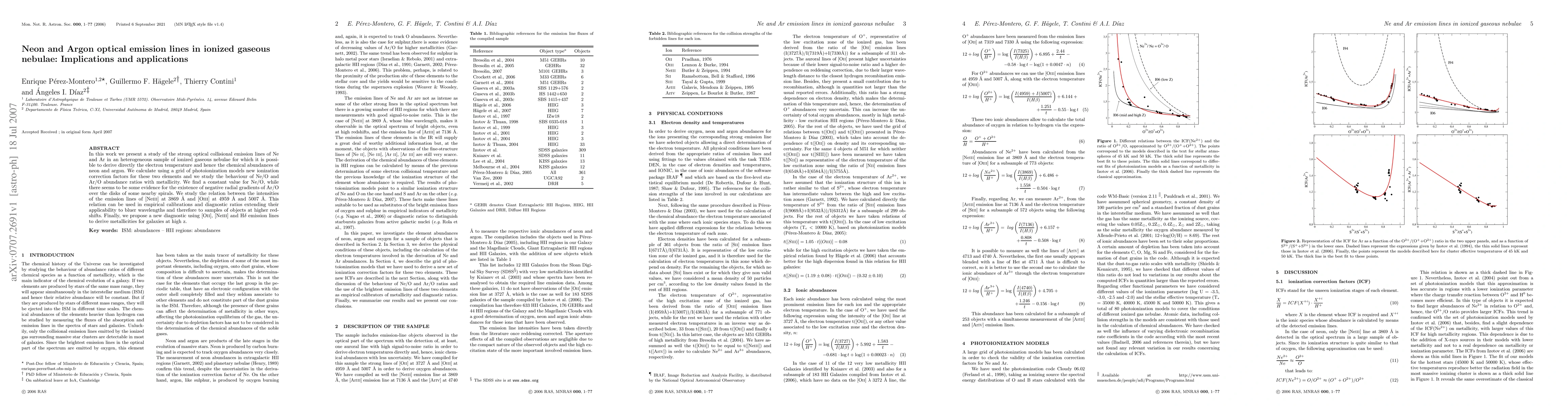 In this work we present a study of the strong optical collisional emission lines of Ne and Ar in an heterogeneous sample of ionized gaseous nebulae for which it is possible to derive directly the electron temperature and hence the chemical abundances of neon and argon. We calculate using a grid of photoionization models new ionization correction factors for these two elements and we study the behaviour of Ne/O and Ar/O abundance ratios with metallicity. We find a constant value for Ne/O, while there seems to be some evidence for the existence of negative radial gradients of Ar/O over the disks of some nearby spirals. We study the relation between the intensities of the emission lines of [NeIII] at 3869 \AA and [OIII] at 4959 \AA and 5007 \AA. This relation can be used in empirical calibrations and diagnostic ratios extending their applicability to bluer wavelengths and therefore to samples of objects at higher redshifts. Finally, we propose a new diagnostic using [OII], [NeIII] and Hdelta emission lines to derive metallicities for galaxies at high z.