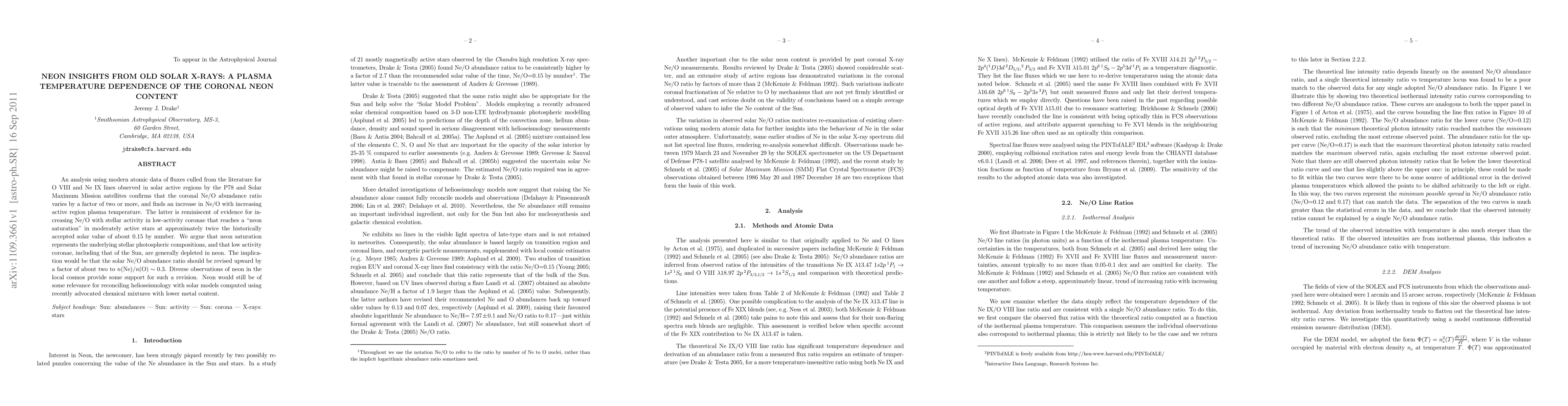 This paper analyzes solar X-ray data to show that the Ne/O abundance ratio in coronal plasmas varies significantly with temperature, suggesting a revision of the solar Ne/O ratio to approximately 0.3, double the historically accepted value. This finding aligns with neon saturation observed in low-activity stellar coronae.