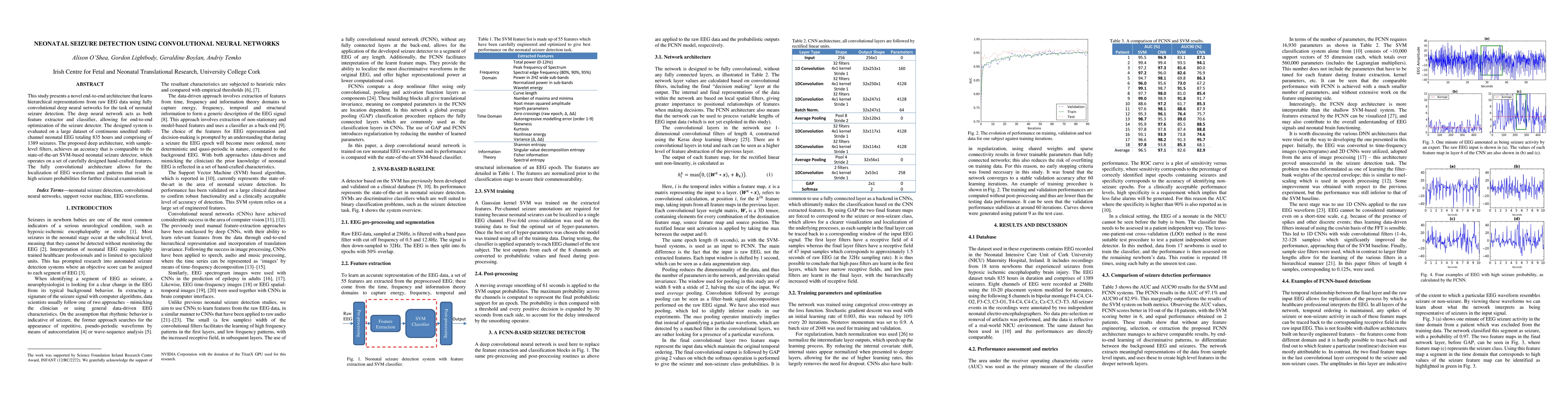 This study introduces a convolutional neural network for detecting neonatal seizures from raw EEG data, achieving comparable accuracy to traditional SVM-based methods while providing end-to-end optimization and localization of seizure-indicative EEG patterns. The system was tested on an extensive 835-hour dataset with 1389 seizures.
