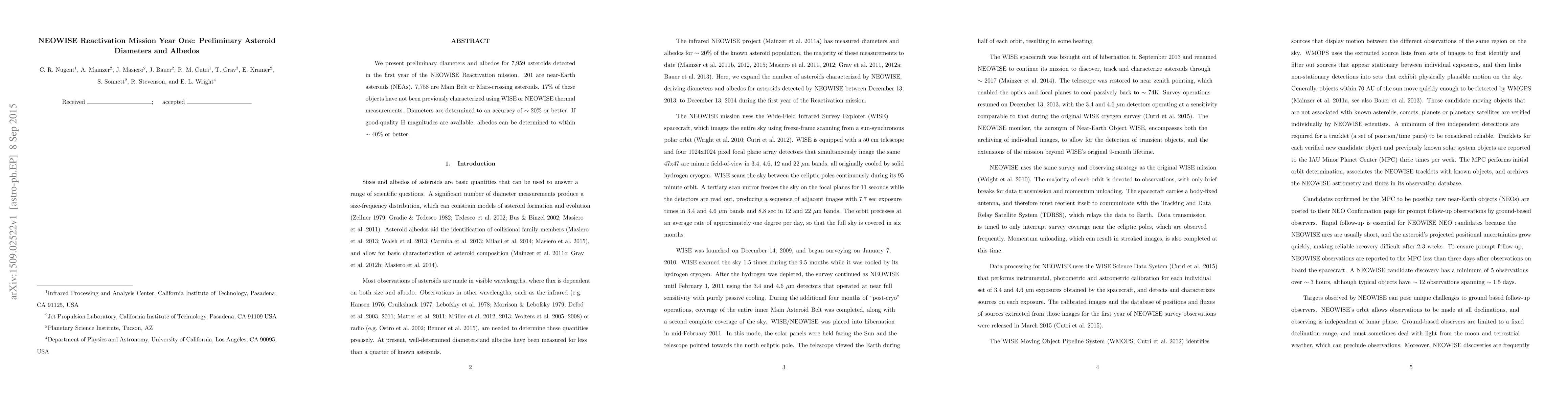 The NEOWISE Reactivation Mission's first year detected 7,959 asteroids, including 201 near-Earth asteroids, with preliminary diameters and albedos. Diameters are accurate to ~20% or better, and albedos can be estimated within ~40% if good-quality H magnitudes are available.