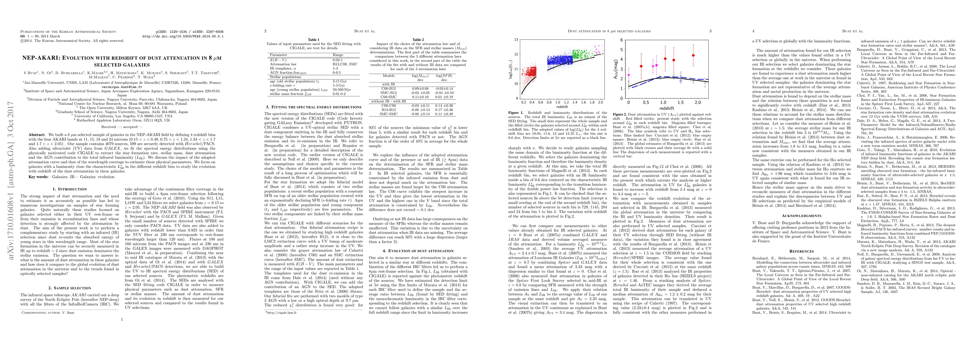 We built a 8um selected sample of galaxies in the NEP-AKARI field by defining