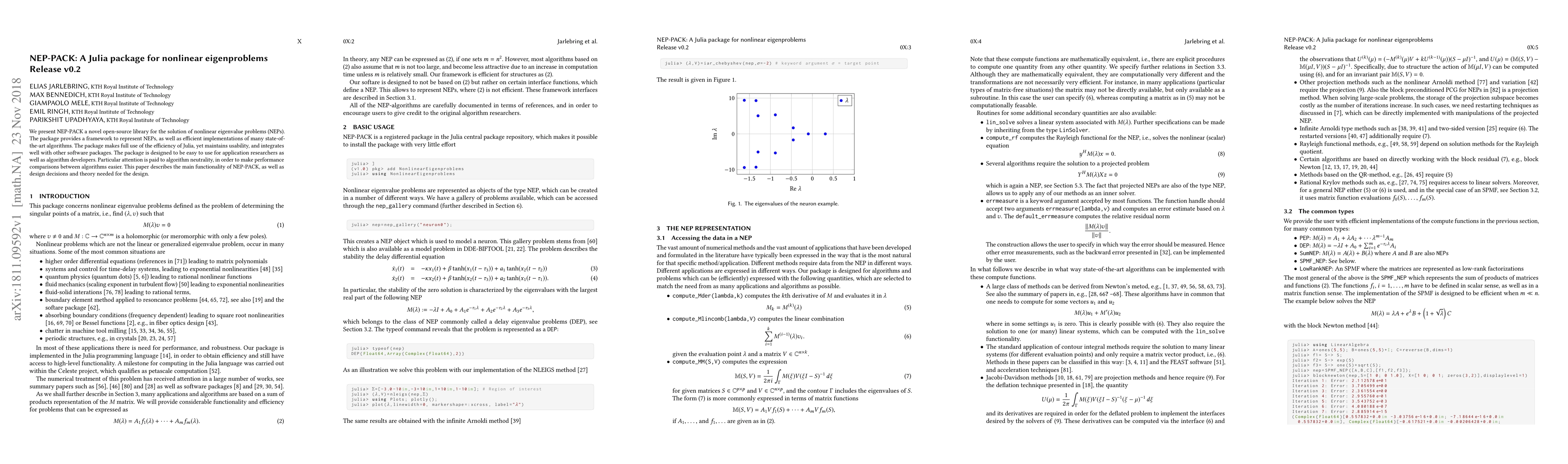 NEP-PACK is an open-source Julia library for solving nonlinear eigenvalue problems, offering efficient algorithms and ease of use for both researchers and developers, with a focus on algorithm neutrality for performance comparisons. The package is designed to integrate seamlessly with other software and leverage Julia's computational efficiency.