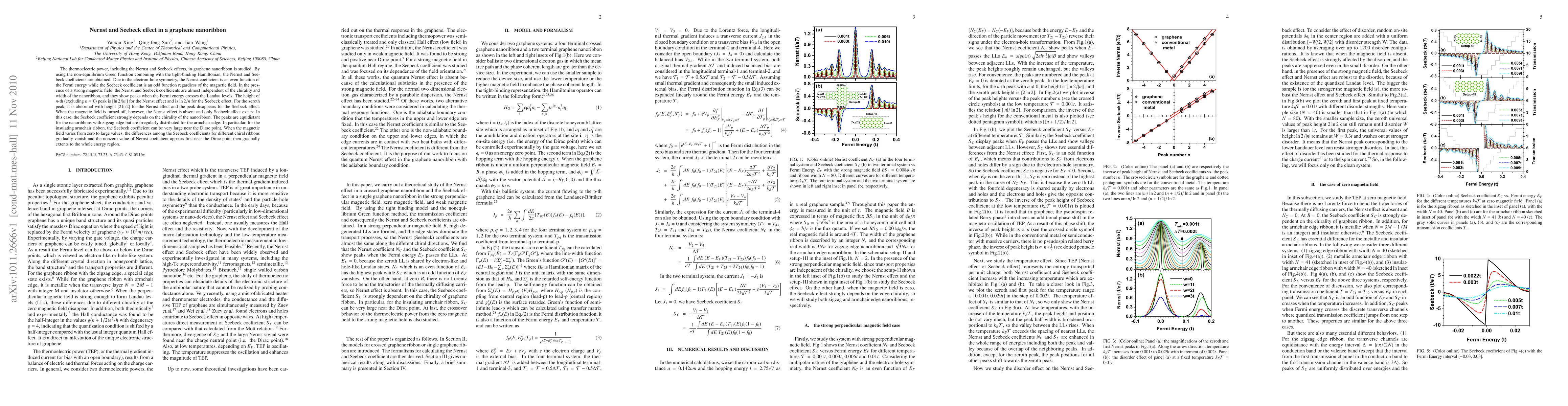 The paper presents detailed numerical calculations of Nernst and Seebeck coefficients in graphene nanoribbons using non-equilibrium Green function and tight-binding Hamiltonian, providing insights into the effects of magnetic fields and chirality.