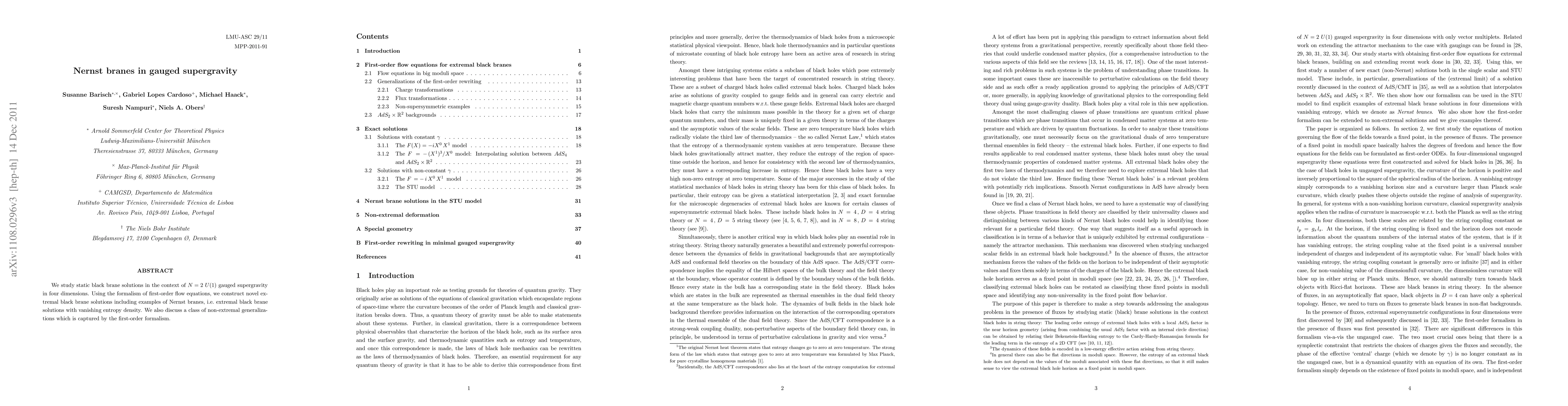 This paper constructs novel extremal black brane solutions in N = 2 U(1) gauged supergravity, including Nernst branes with zero entropy density, using first-order flow equations. It also explores non-extremal generalizations of these solutions within the same formalism.