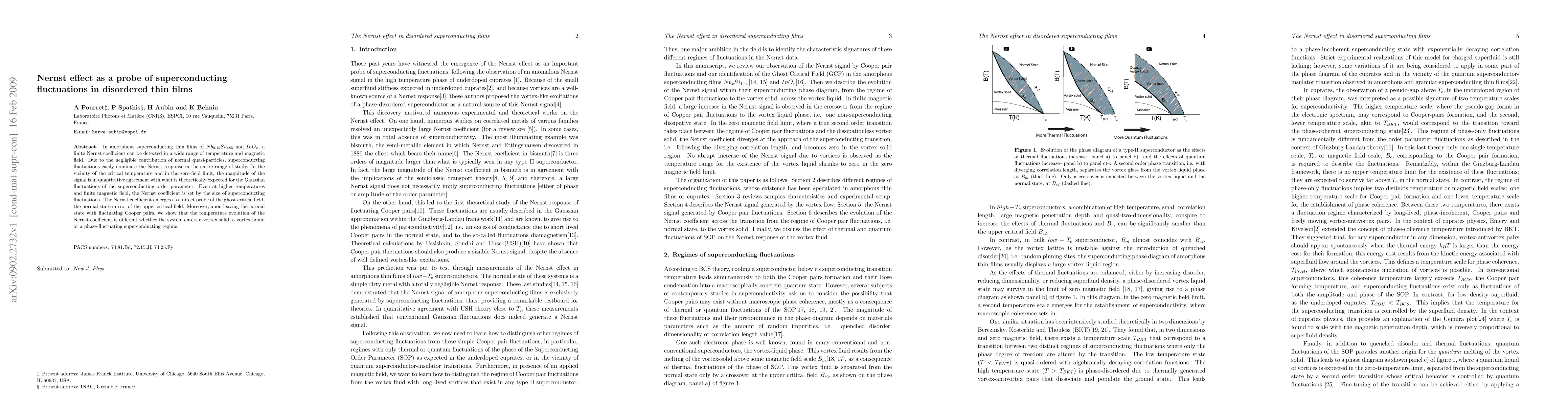 The Nernst effect in amorphous superconducting thin films reveals superconducting fluctuations, with the Nernst coefficient directly probing the ghost critical field. The magnitude of the Nernst signal aligns with theoretical predictions for Gaussian fluctuations, indicating distinct temperature evolutions depending on the superconducting state entered.