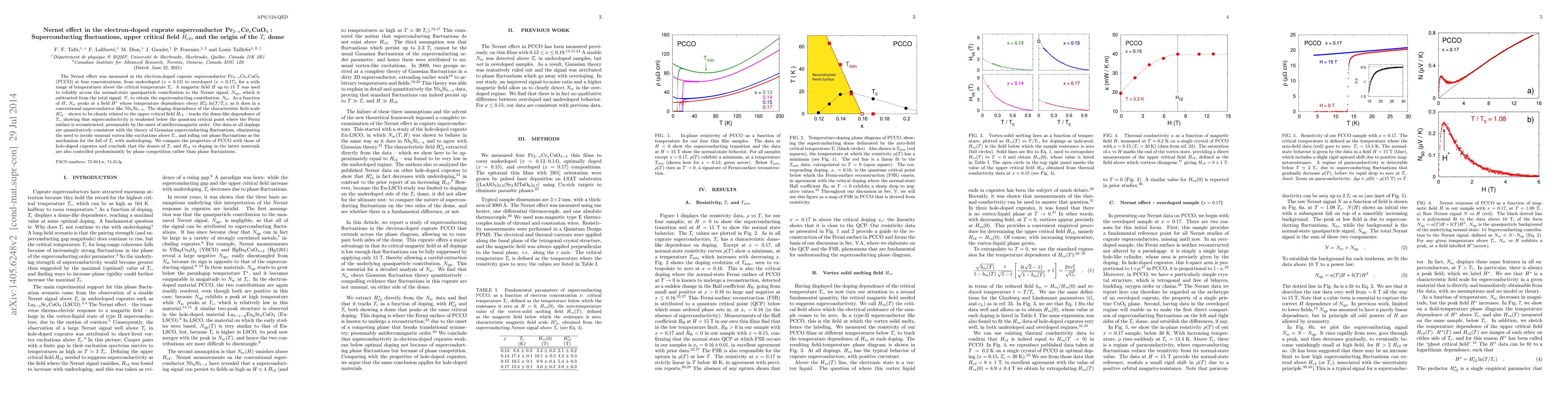The Nernst effect in the electron-doped cuprate superconductor PCCO reveals that the superconducting contribution peaks at a field H* whose temperature dependence aligns with conventional superconductors, indicating Gaussian superconducting fluctuations. The characteristic field scale Hc2* correlates with the dome-shaped dependence of Tc, suggesting that superconductivity weakens below the quantum critical point due to antiferromagnetic order.