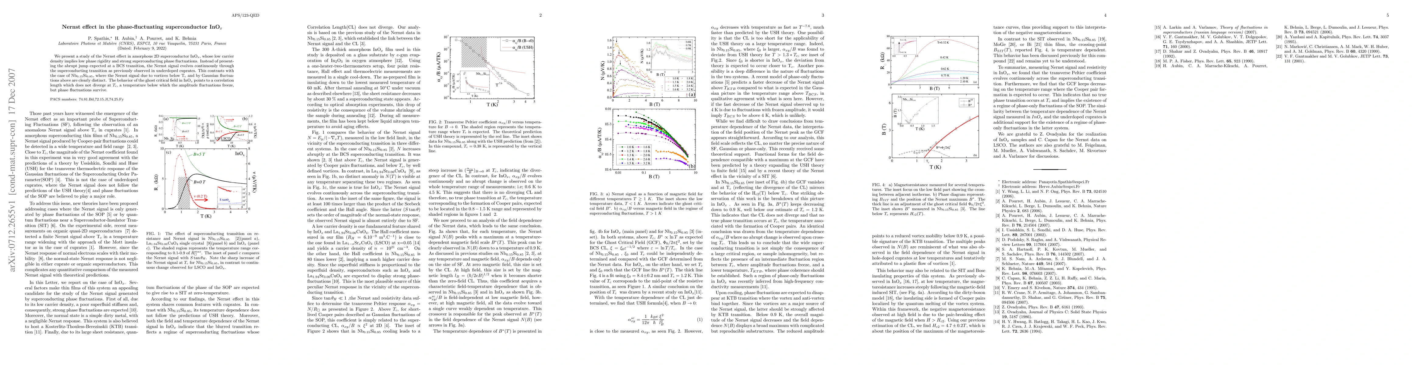 Researchers studied the Nernst effect in InO$_x$, a superconductor with strong phase fluctuations, finding it evolves continuously through the transition, unlike materials with distinct vortex signals below T$_c$.