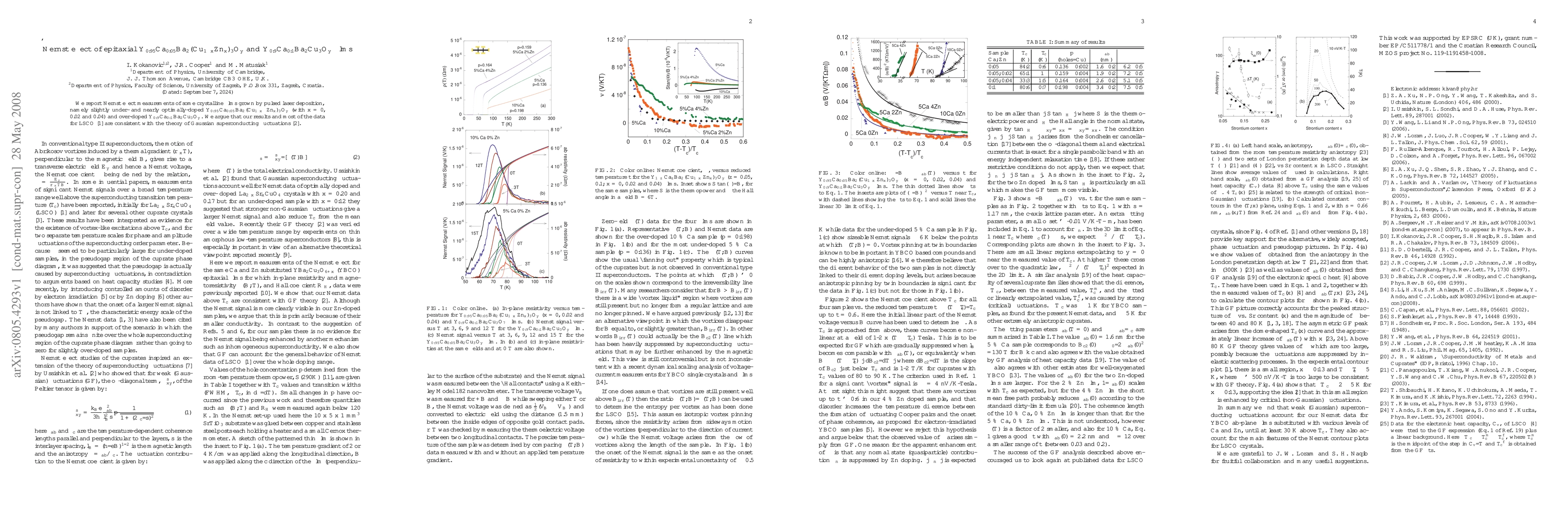 We report Nernst effect measurements for some crystalline films of Ca and Zn-doped yttrium barium copper oxide grown by pulsed laser deposition. We argue that our results and most of the published data for LSCO are consistent with the theory of Gaussian superconducting fluctuations.