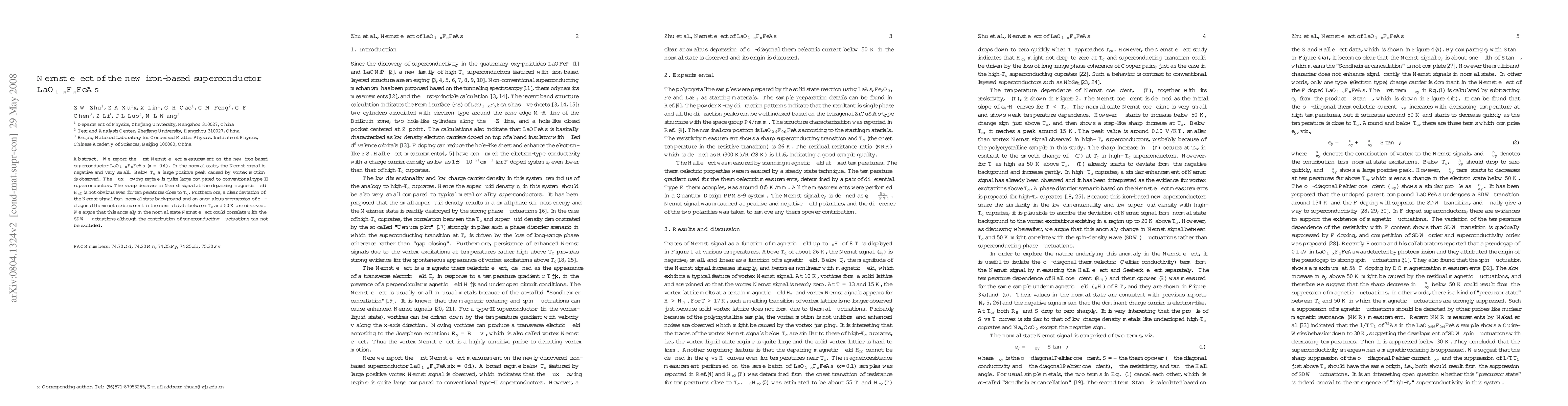 This study reports the first Nernst effect measurement on the iron-based superconductor LaO$_{1-x}$F$_{x}$FeAs $(x=0.1)$, revealing a large positive peak below the critical temperature due to vortex motion, and proposes that anomalies in the normal state Nernst effect correlate with spin density wave fluctuations.