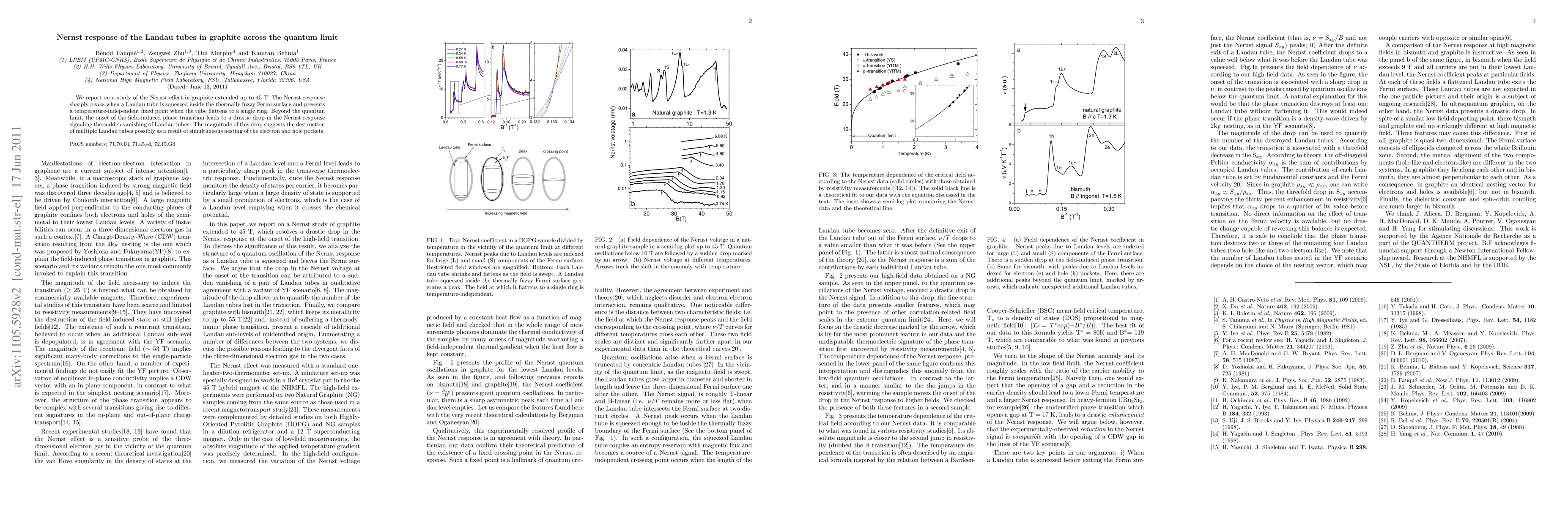 Researchers studied the Nernst effect in graphite at high magnetic fields, finding that Landau tubes collapse when flattened to a single ring, resulting in a drastic drop in response, suggesting destruction of multiple tubes.
