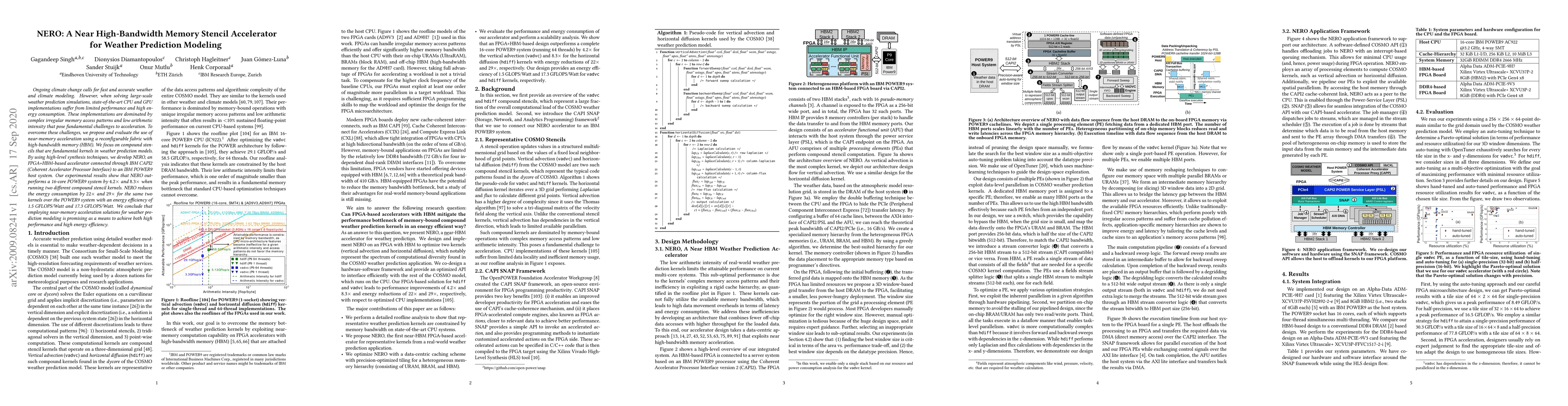 NERO, an FPGA+HBM-based accelerator, leverages near-memory acceleration to enhance the performance and energy efficiency of weather prediction models. It achieves up to 8.3x speedup and 29x energy efficiency over a 16-core CPU system, demonstrating the potential of high-bandwidth memory stencil accelerators.