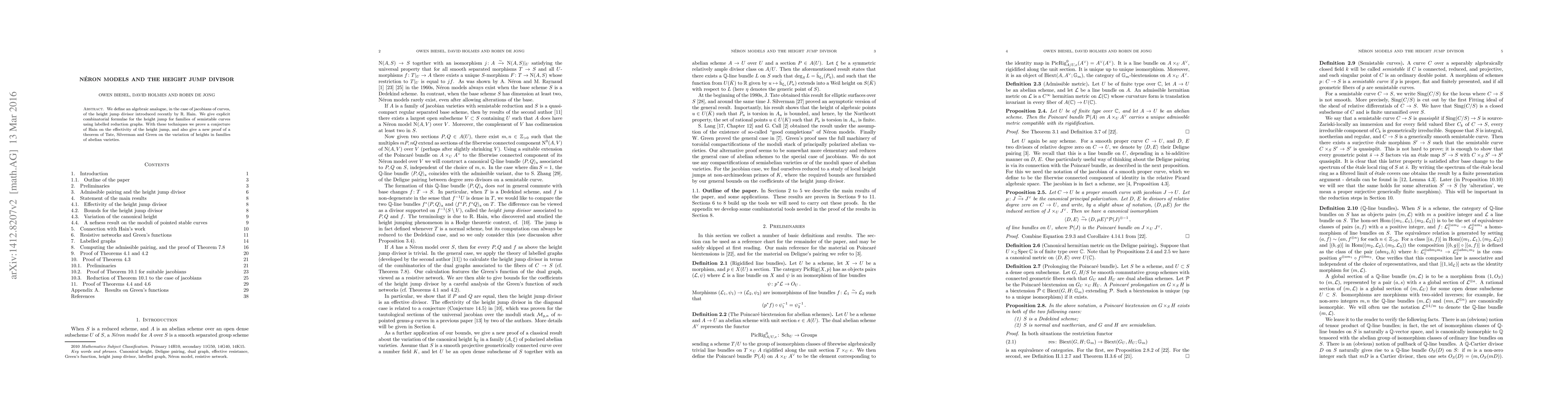 This paper introduces an algebraic analogue of the height jump divisor for jacobians of curves, providing explicit combinatorial formulae to prove conjectures on effectiveness and variation of heights in families of abelian varieties.