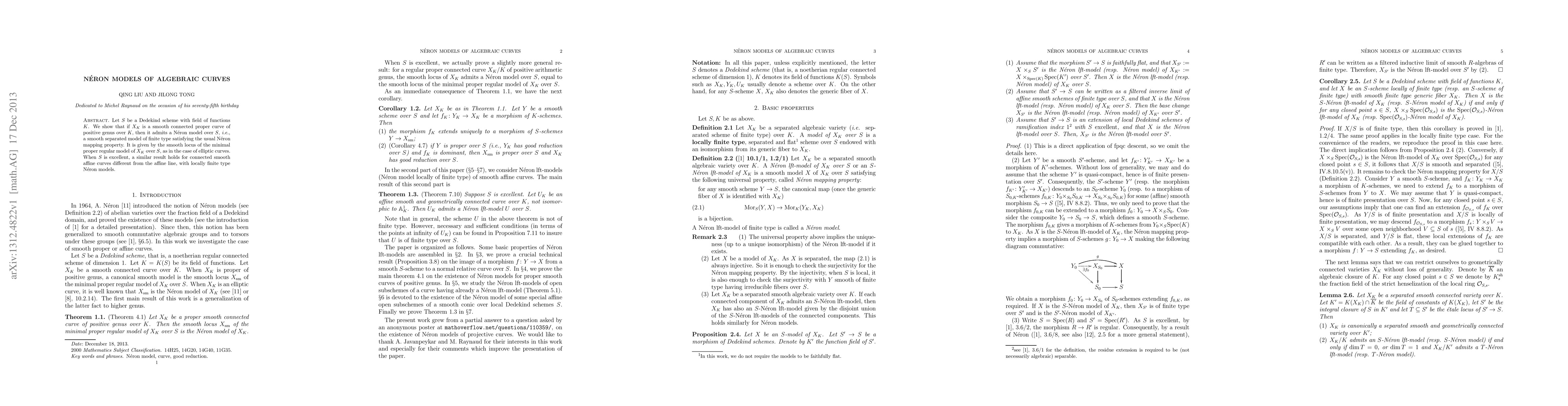 This paper demonstrates the existence of Néron models for smooth connected proper curves of positive genus over a Dedekind scheme, establishing that these models arise from the smooth locus of the minimal proper regular model. The result extends to connected smooth affine curves over excellent schemes, yielding locally finite type Néron models.