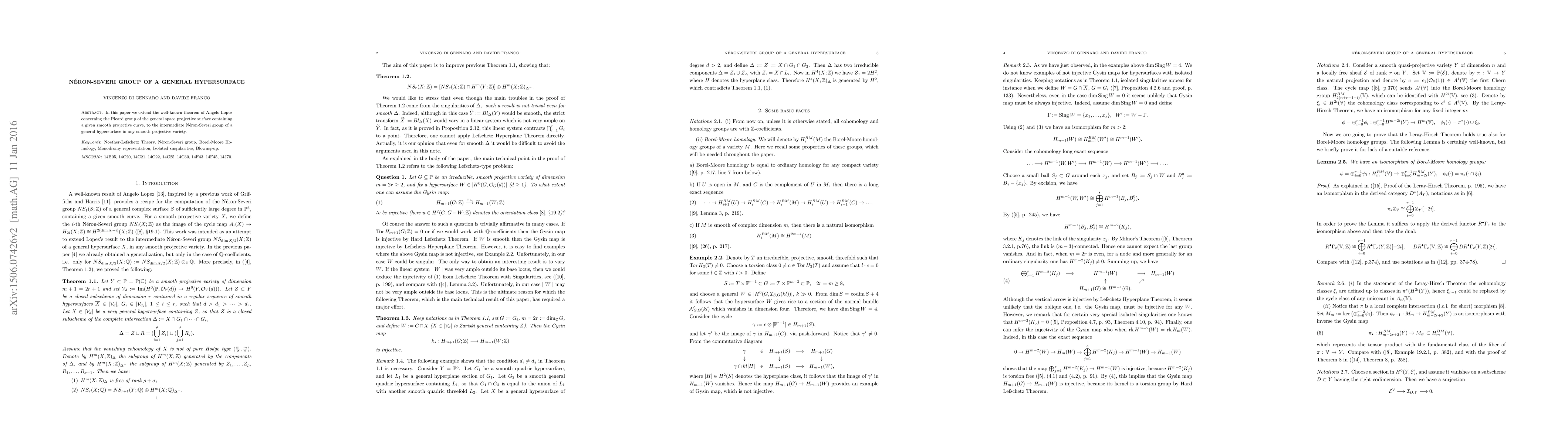 This paper extends Angelo Lopez's theorem on the Picard group of projective surfaces to the N\'eron-Severi group of general hypersurfaces within any smooth projective variety, providing a broader understanding of the algebraic structure.
